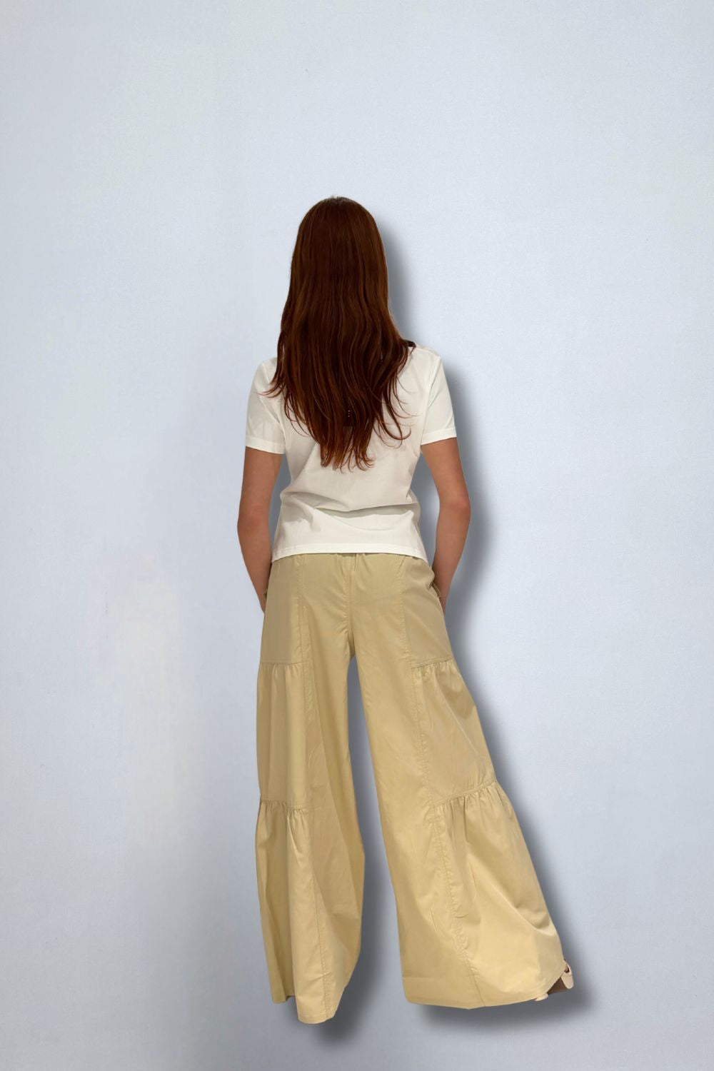 Elastic back waist tiered pants