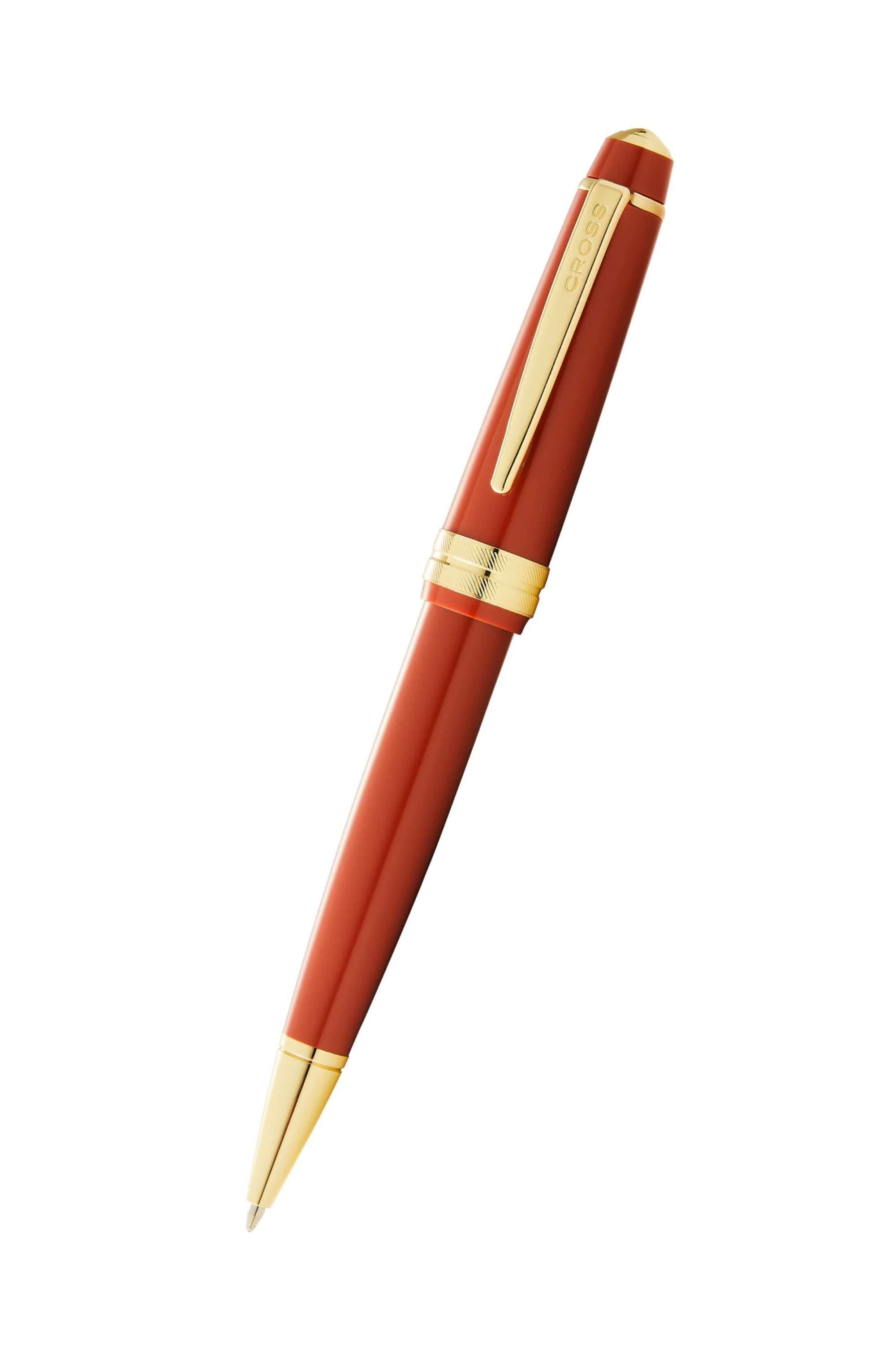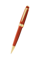 A high quality precisely made ballpoint pen crafted with a amber resin barrel, complimented with gold plated trims.