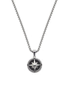 ACCL1010 Stainless Steel Round Compass Rose Charm Necklace with Black Zirconia