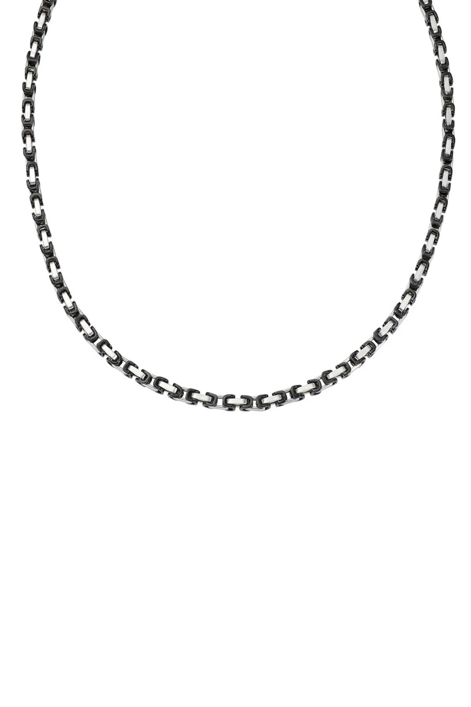 Men’s chain necklace in stainless steel with interlinked links featuring a dual satin and black finish. Adjustable length from 50 to 55 cm.