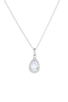 Rhodium-plated sterling silver necklace with drop-cut white cubic zirconia surrounded by white cubic zirconia Adjustable length from 40 to 45 cm. 9 mm charm. A delicate and feminine design for a romantic, colorful and sparkling look, every day.
