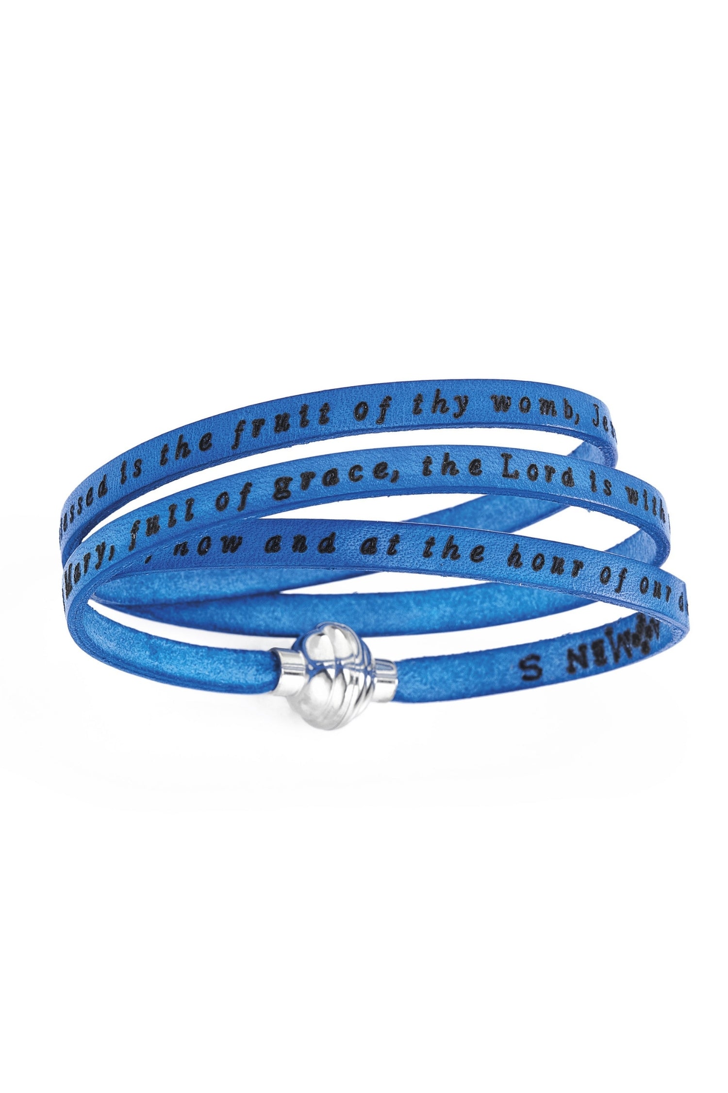 Sterling silverBracelet Hail Mary Prayer - real natural leather - stainless steel magnetic lock - wraps three times - engraved with "Lord's Prayer" in English.
