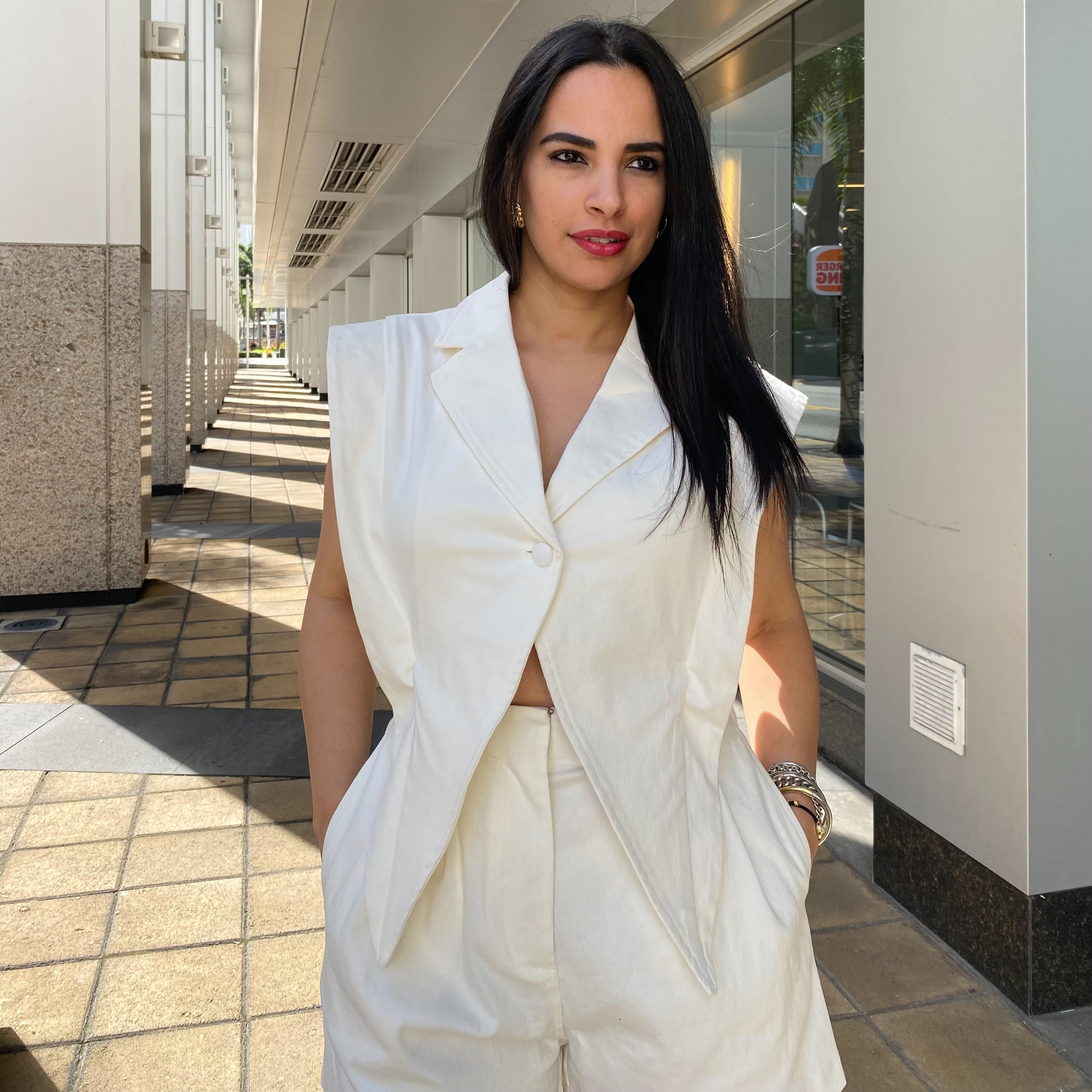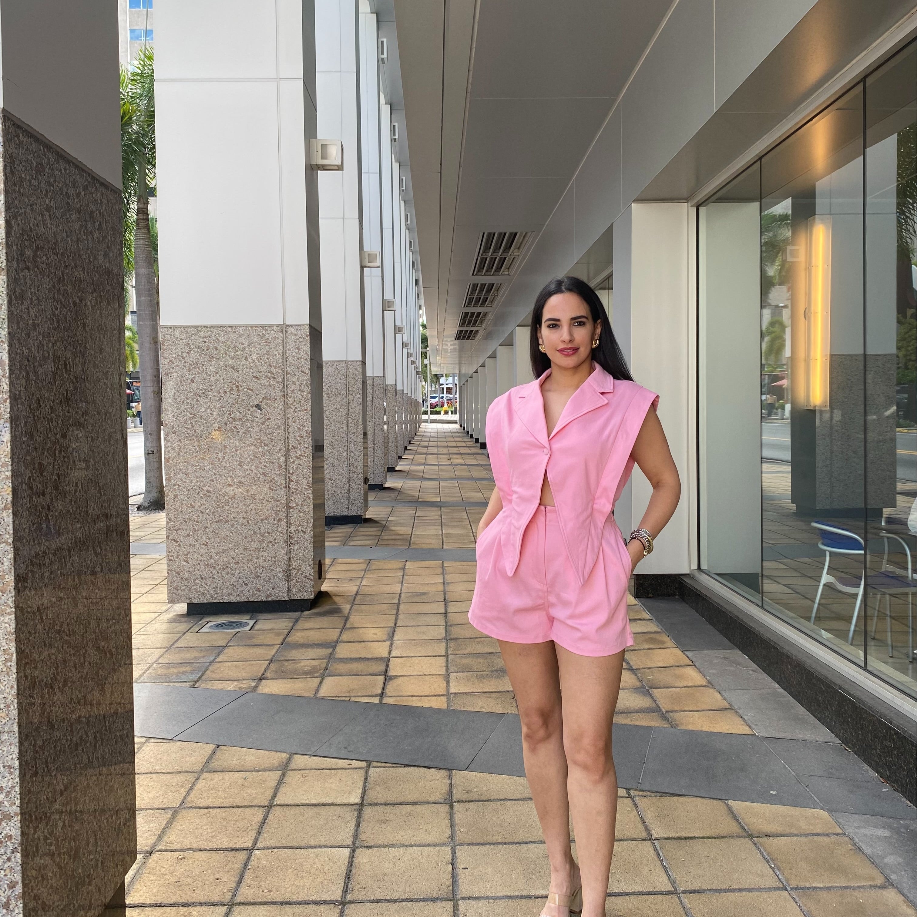 Blazer style top with connected shorts. -Back elastic -Fabric has good stretch -Zipper fly opening -Garment is washed Denim style 2fer day to night romper. Wear it to parties and nights out with a pair of heels or sexy stiletto boots or dress it with a pair of sneakers for fun dates.
