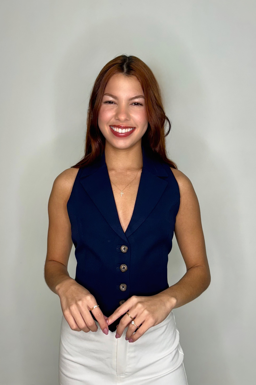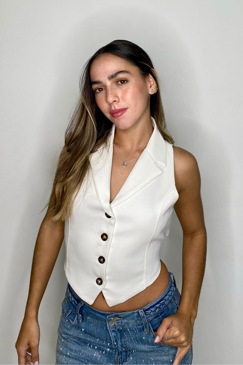 Sleeveless vest with lapel collar, button-down front, and a tailored fit. Stylish and versatile for casual or dressy looks.