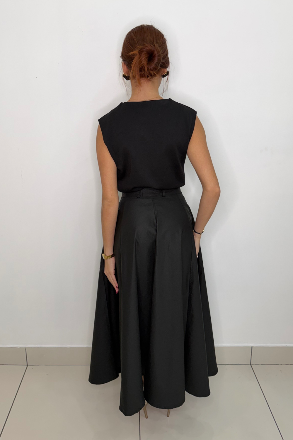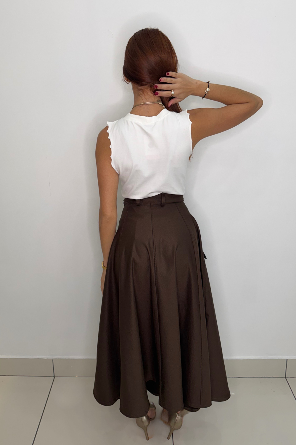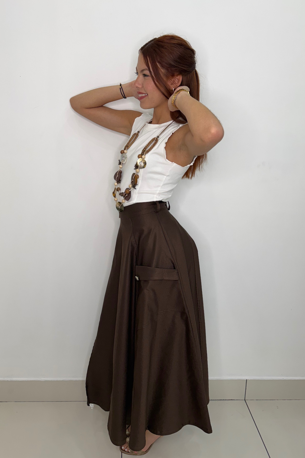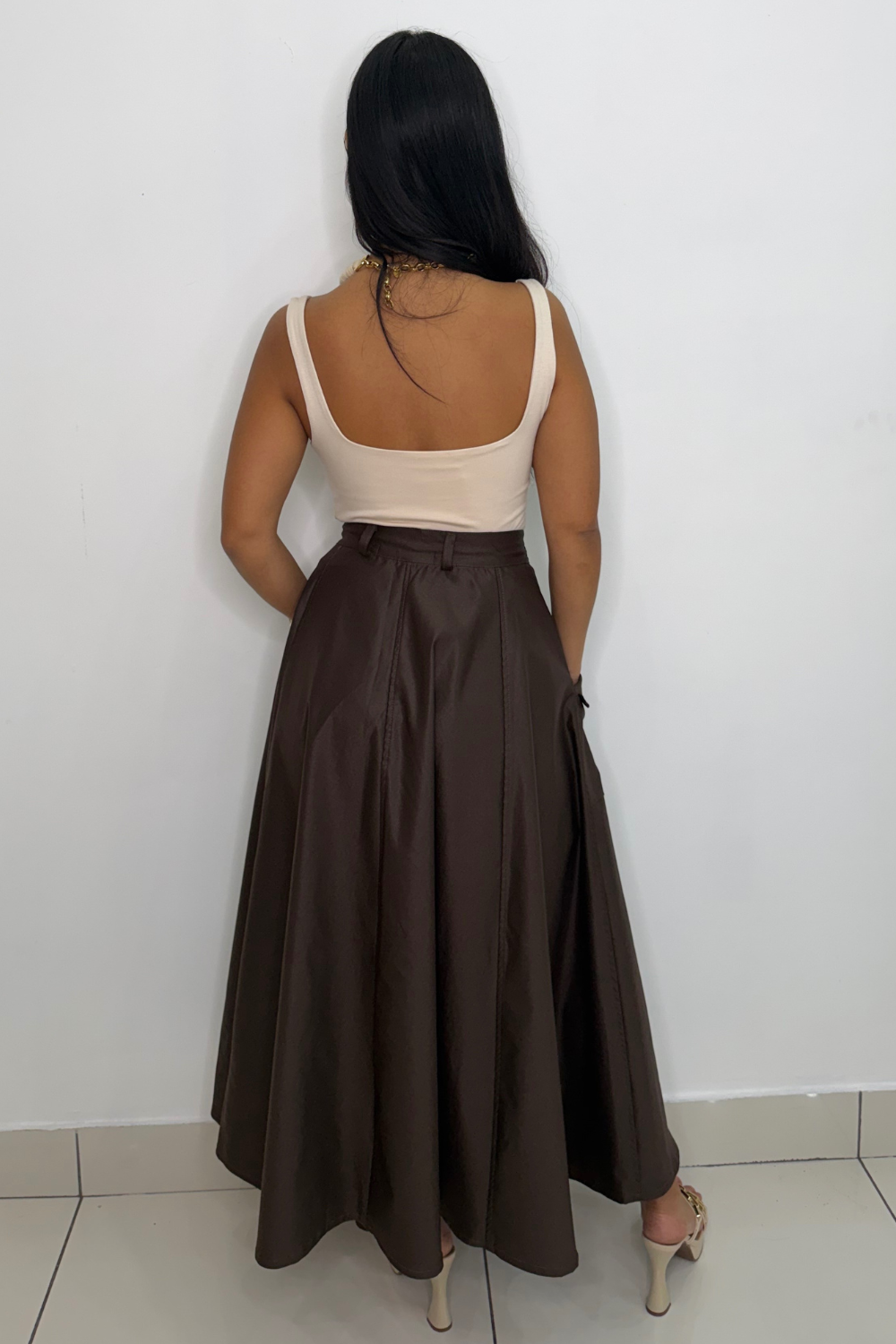 Midi skirt with a side zipper and side pockets, perfect for any occasion. Its versatile design combines elegance and functionality, adapting to different styles.