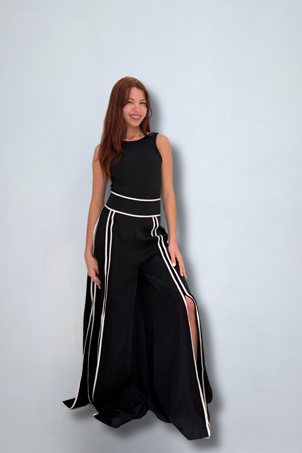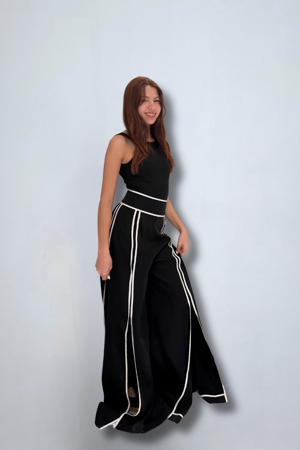 Taping Detail Slit Wide Pants