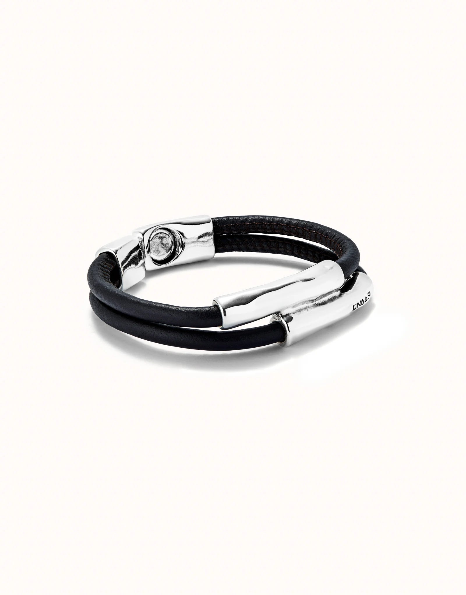 Double strand lether bracelet with two tubes