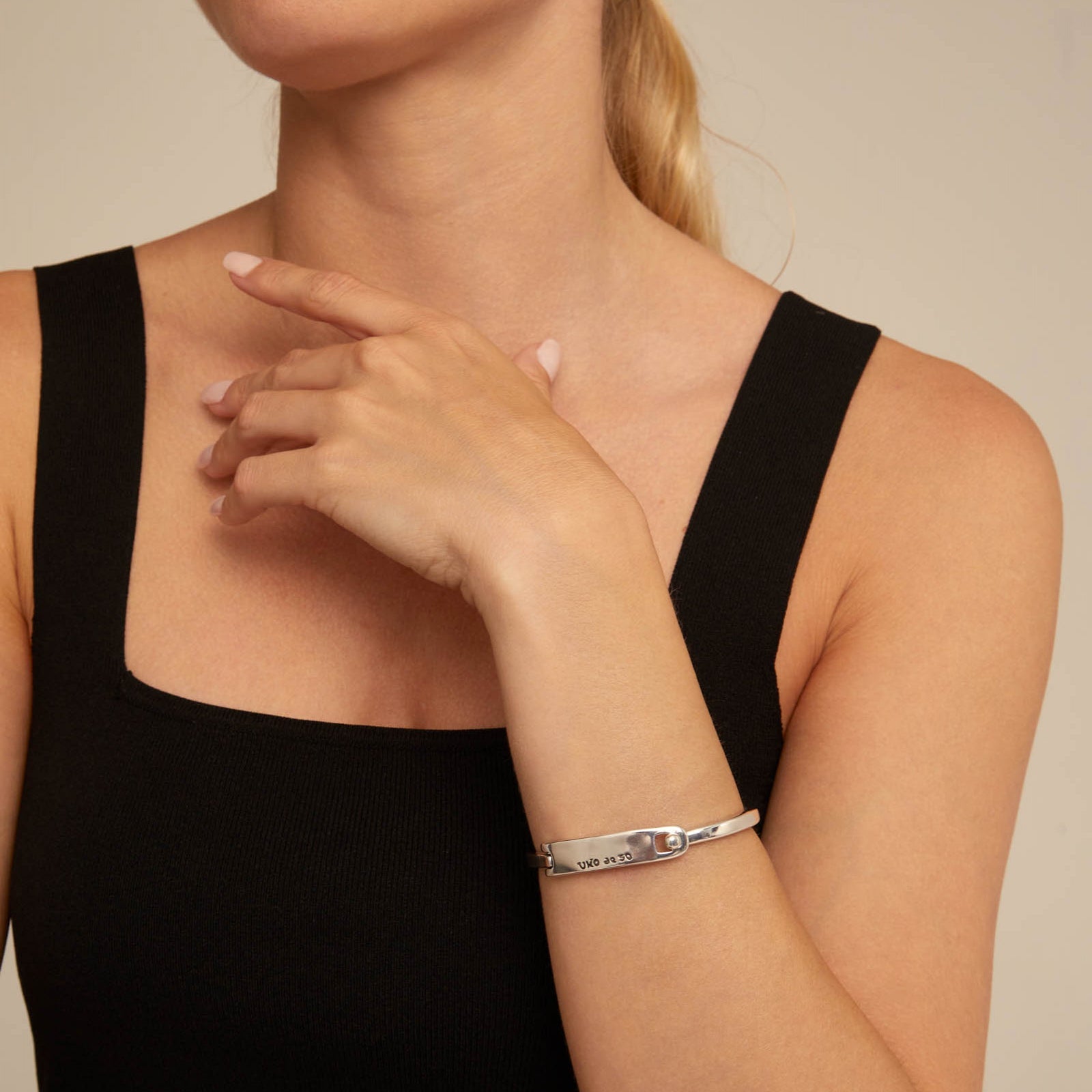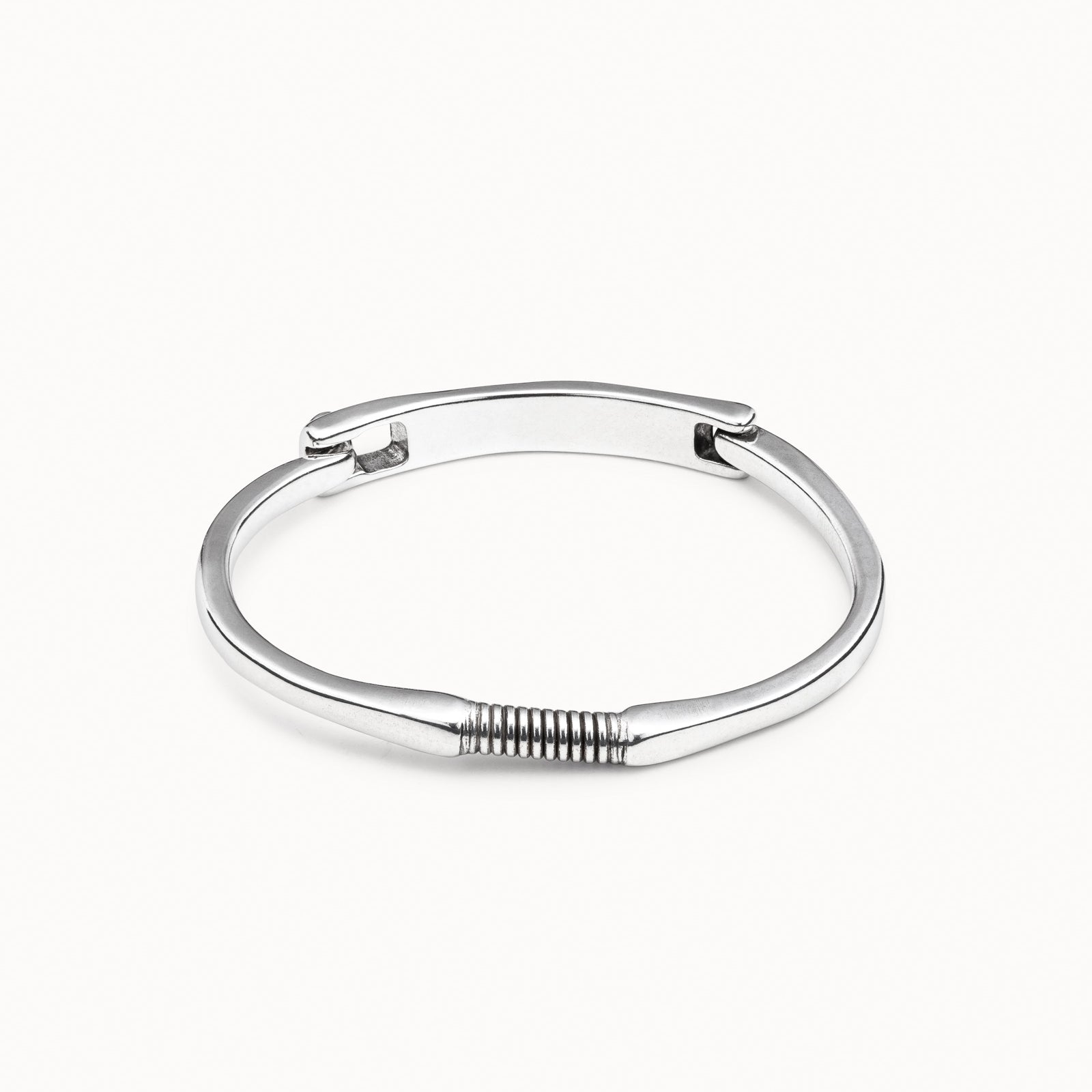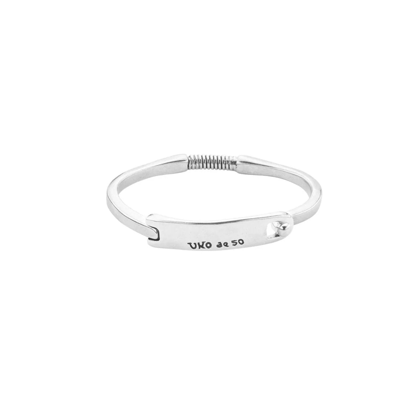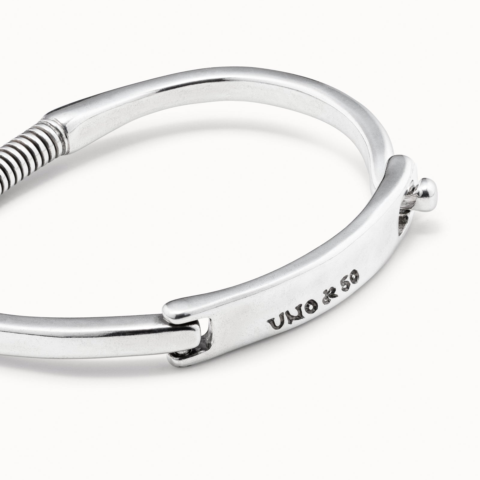 Rigid silver-plated bracelet with an original and simple beret-style clasp. Minimalist in inspiration and bearing our signature house design, this accessory is sure to be a magnet for admiring glances on any occasion. Handcrafted in Spain by UNOde50 using 100% artisanal methods. Available in several sizes.