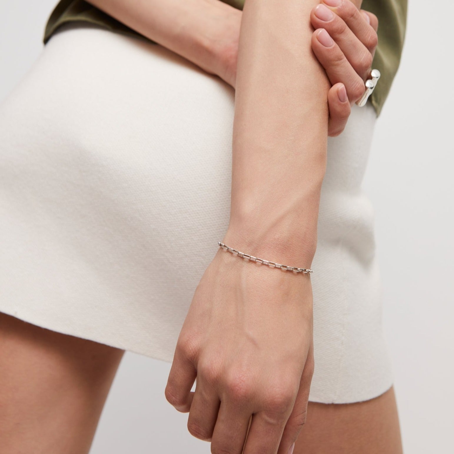 Sterling silver-plated bracelet with mid-sized links. Made in Spain with a 100% handmade process. If you are not worried about what people may think of you, this collection fits you perfectly. Pieces where the dragonfly becomes the central element of the season, true symbols of nonconformity combined with leather, colored crystals and links