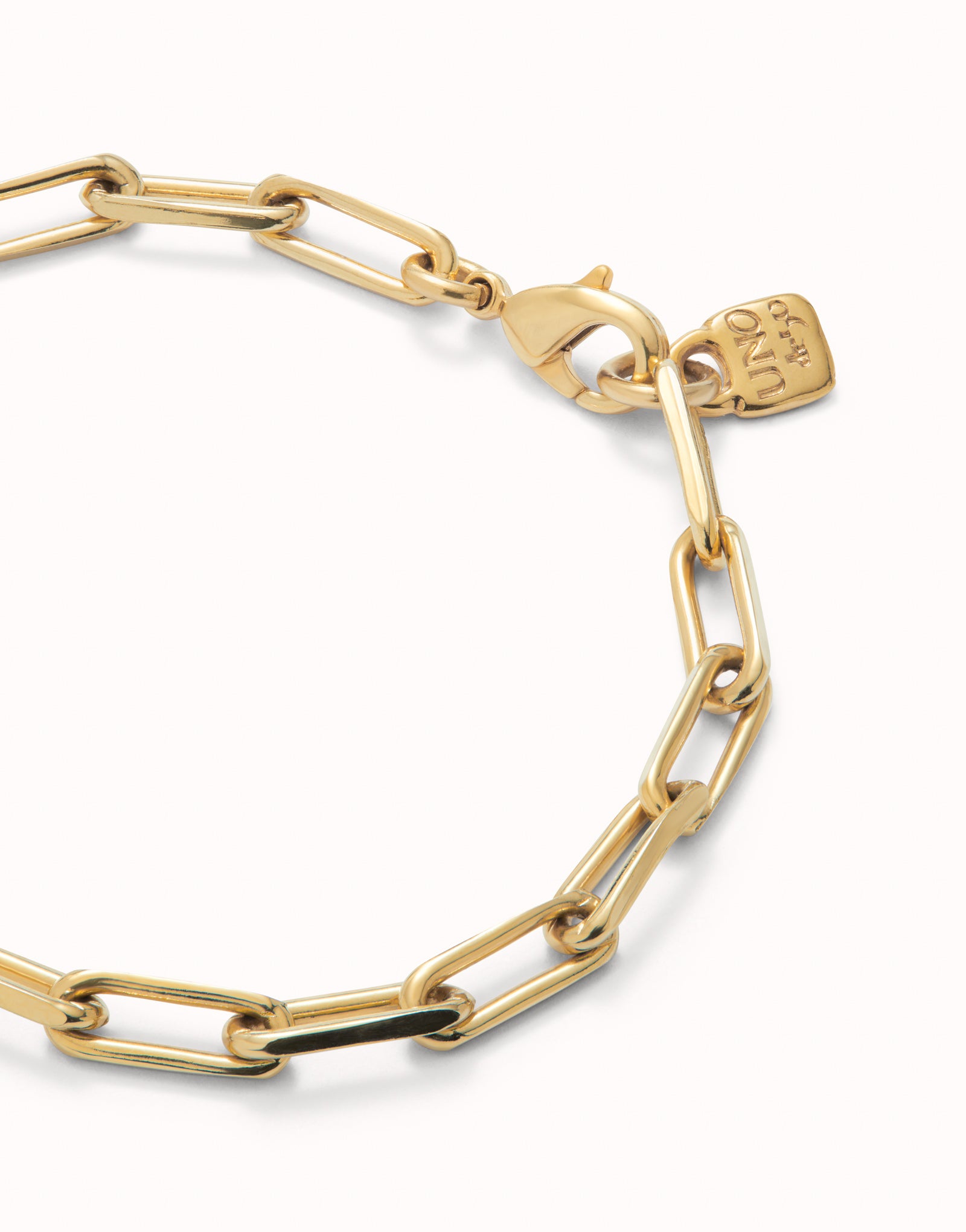 18K gold-plated bracelet with big links. Made in Spain with a 100% handmade process. If you are not worried about what people may think of you, this collection fits you perfectly. Pieces where the dragonfly becomes the central element of the season, true symbols of nonconformity combined with leather, colored crystals and links