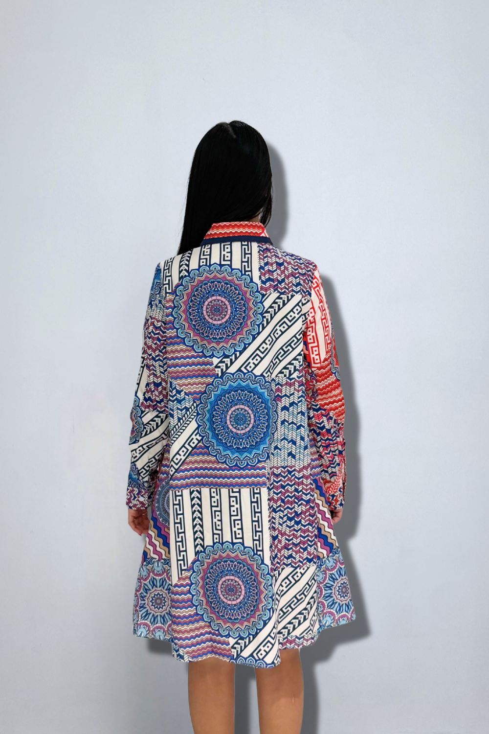 Contrast Print Pearl Button-Down Shirt Dress