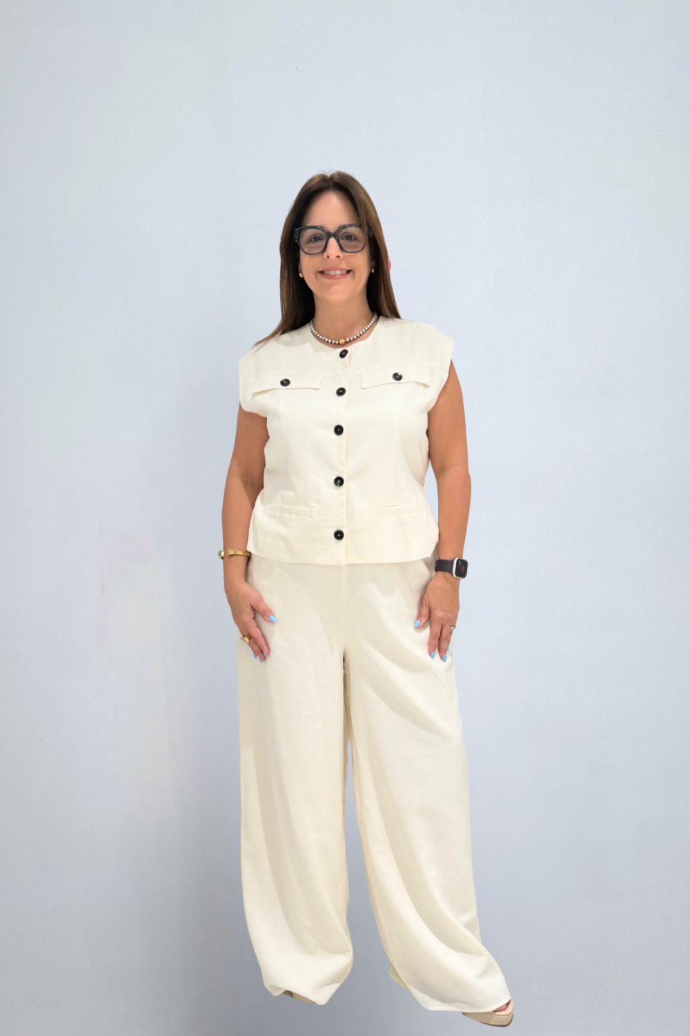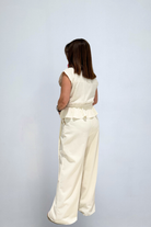 Solid sleeveless peplum button down jumpsuit