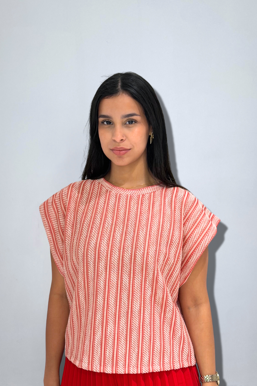 Crew Neckline Cuffed Short Sleeves Clean Hemline Textured Fabric Top