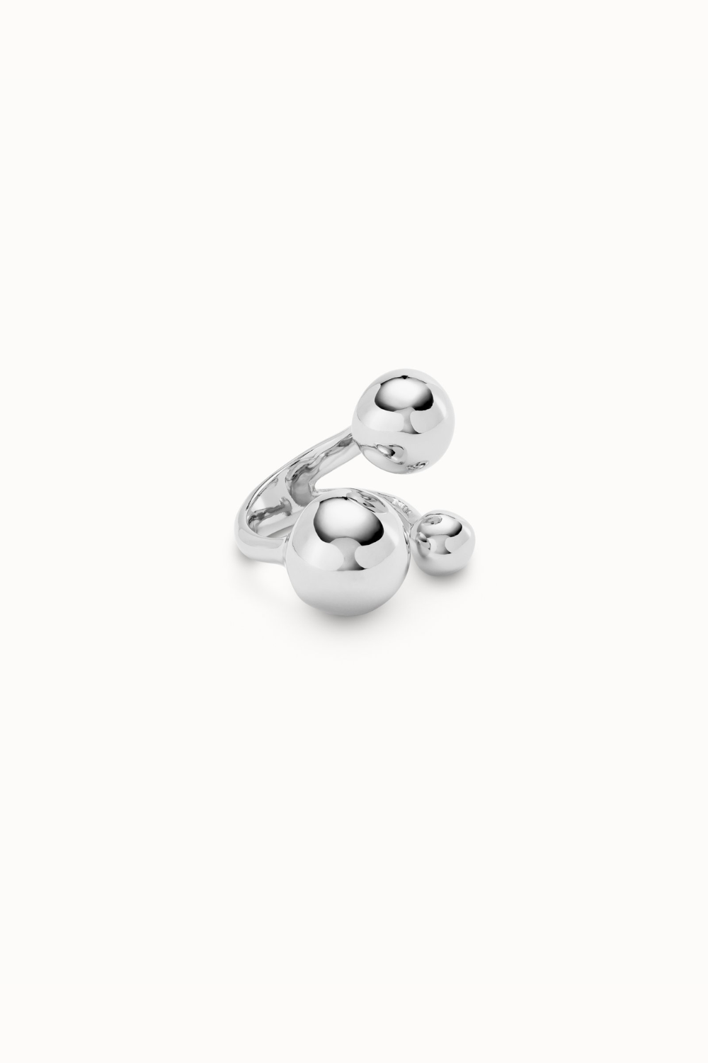 Sterling silver-plated ring with three bubble-shaped beads of different sizes