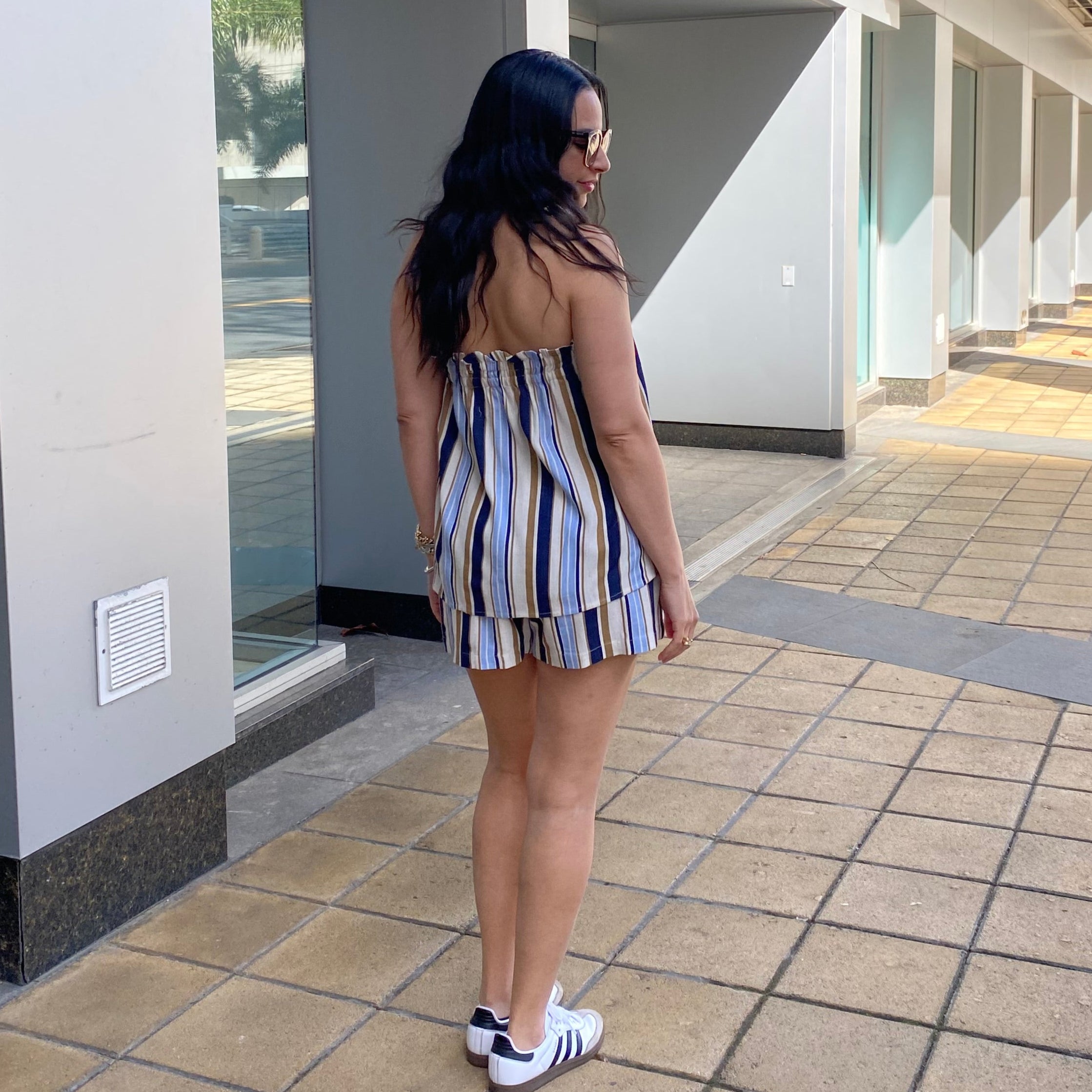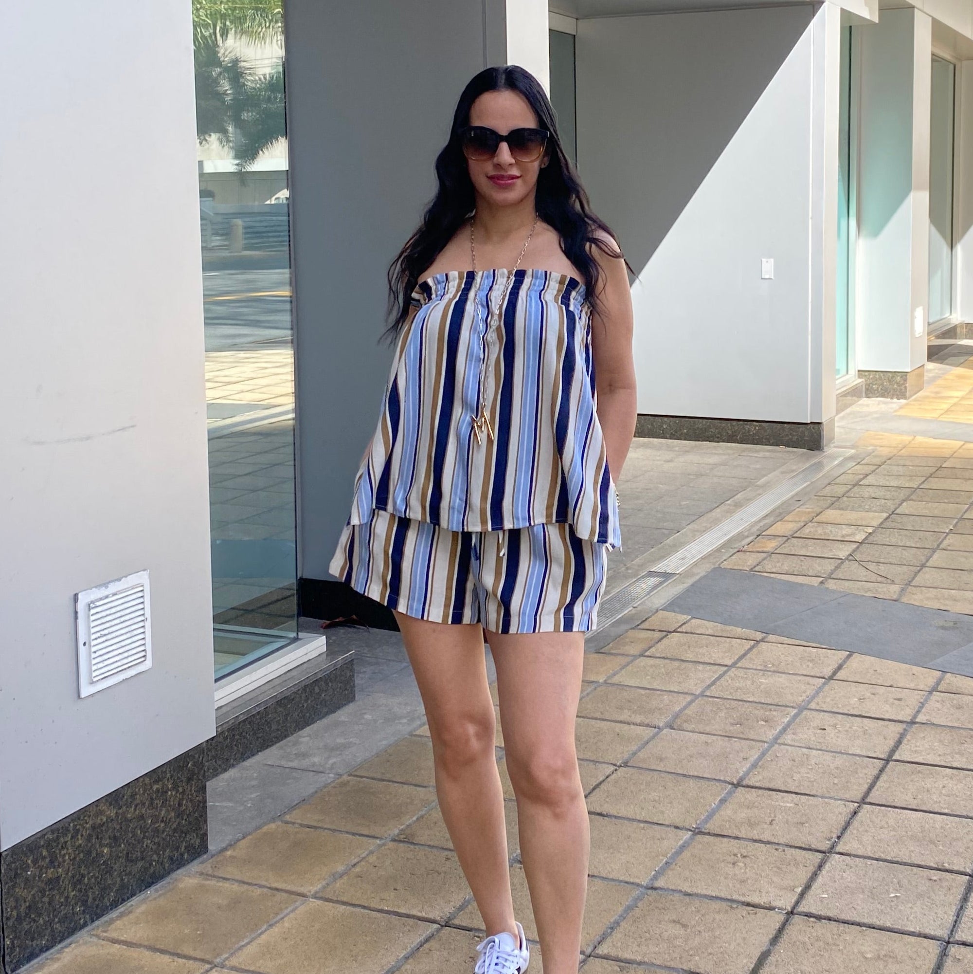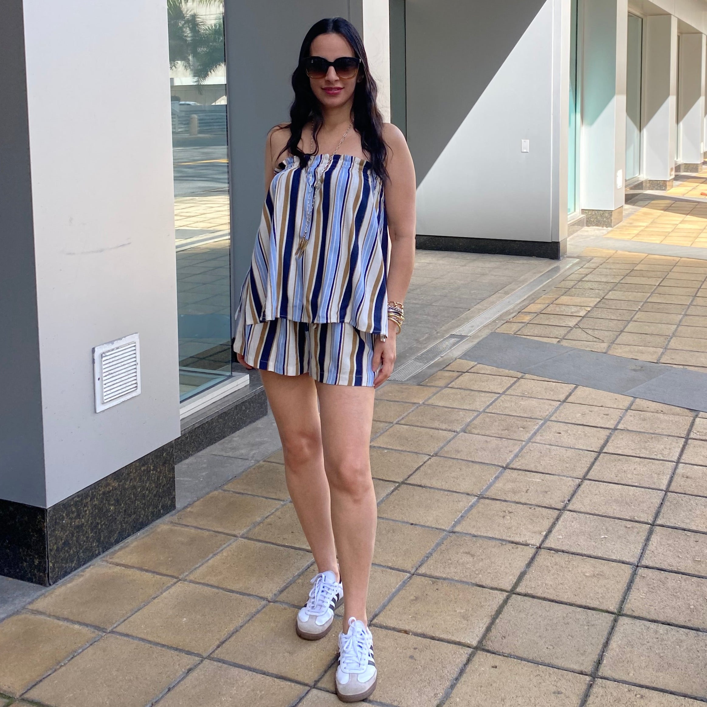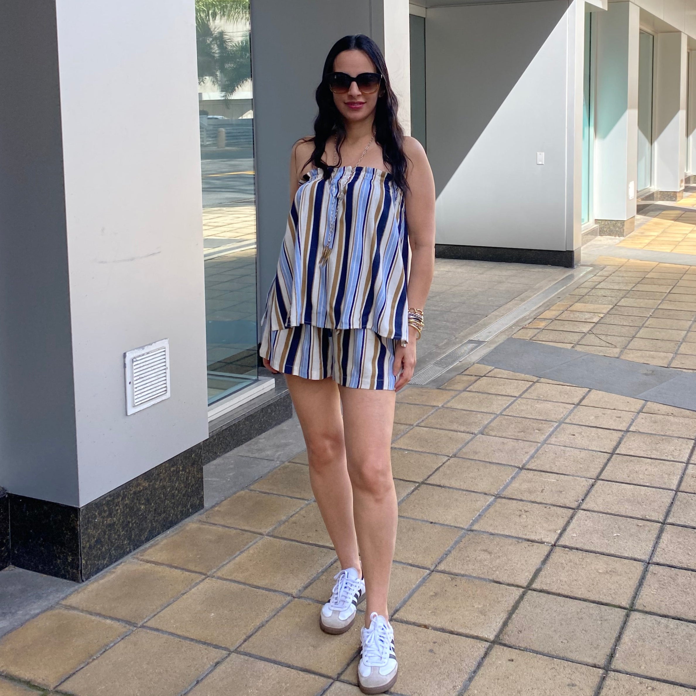 Striped Sleeveless Smocke Top & Shorts Set