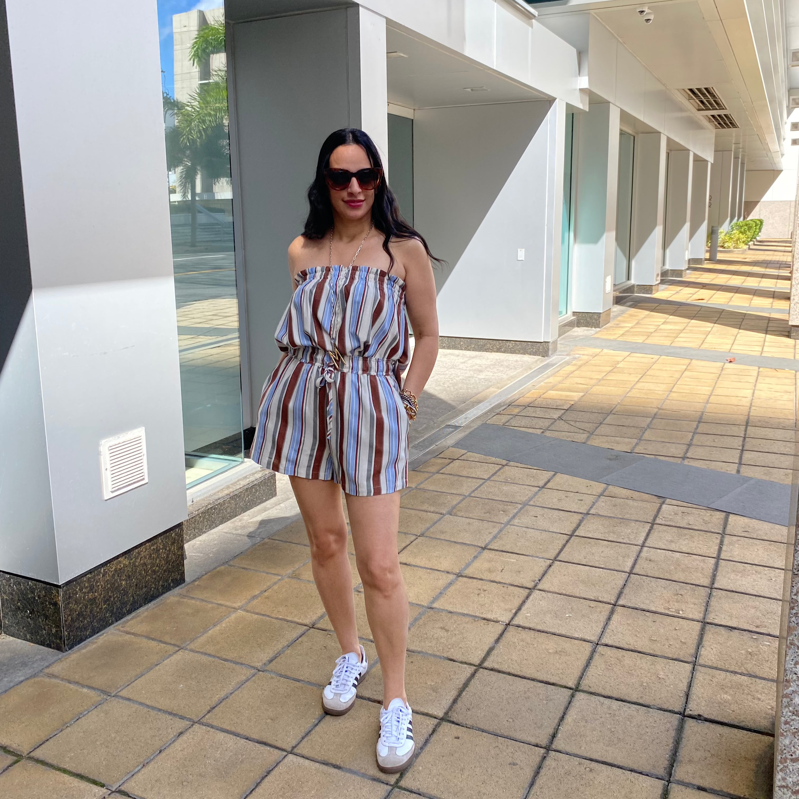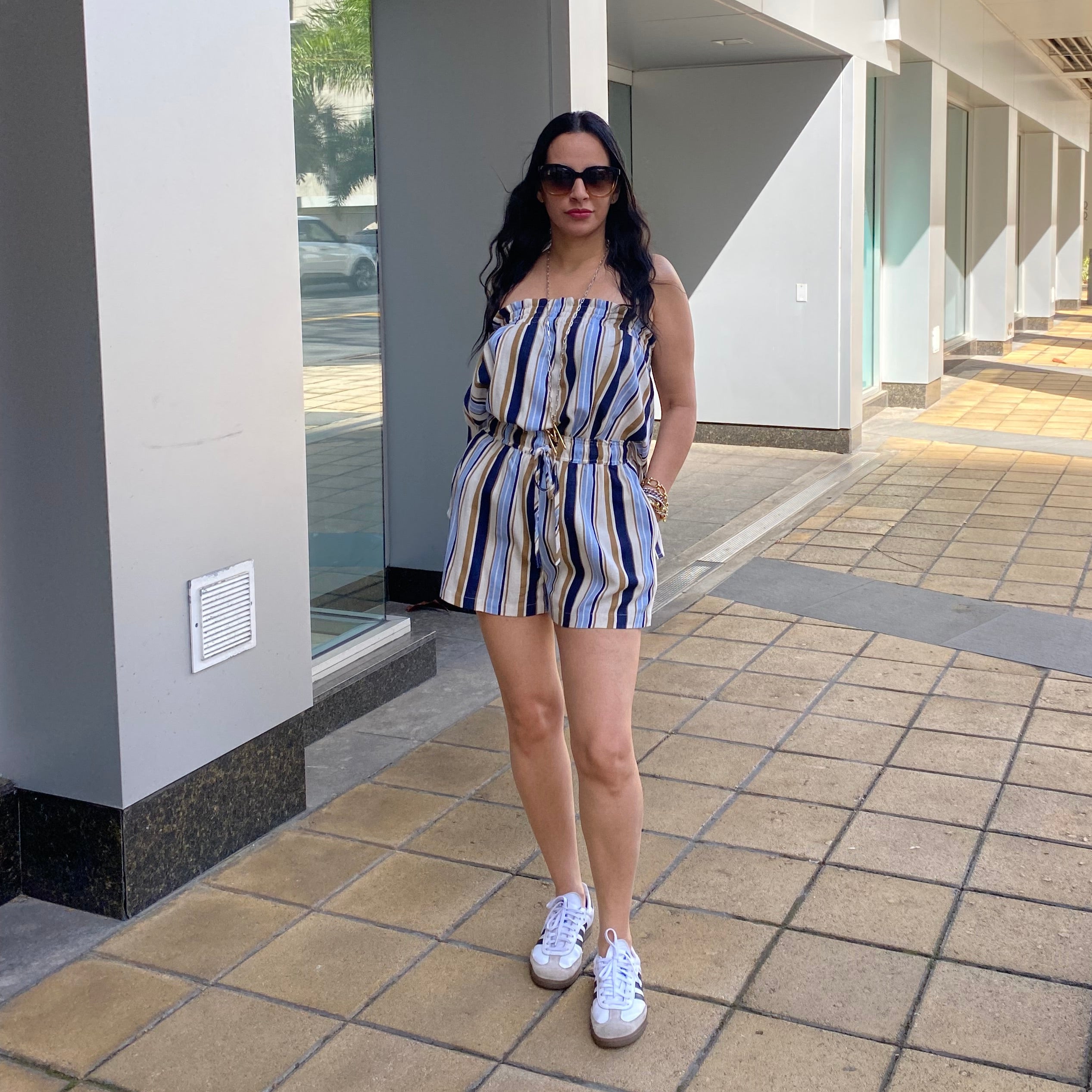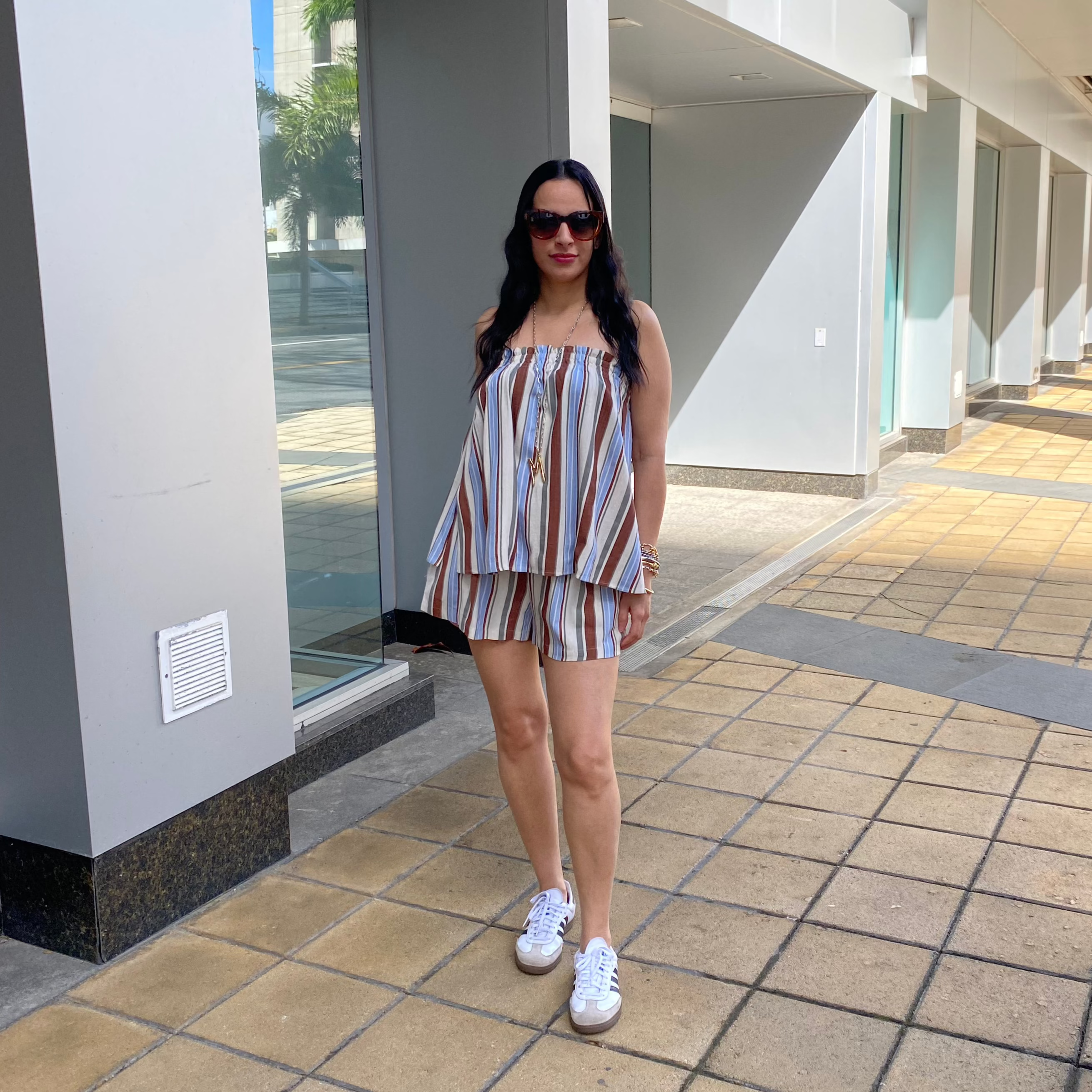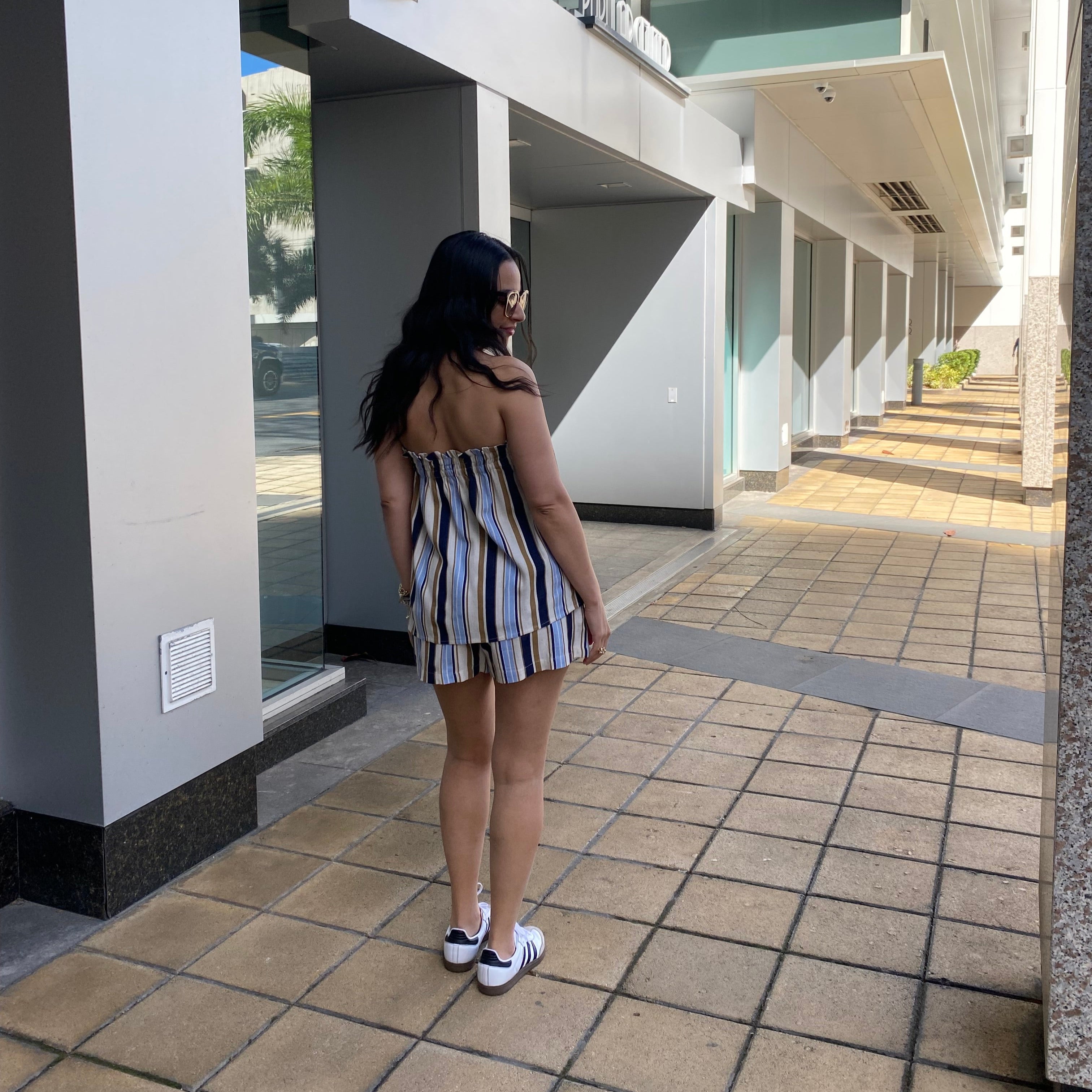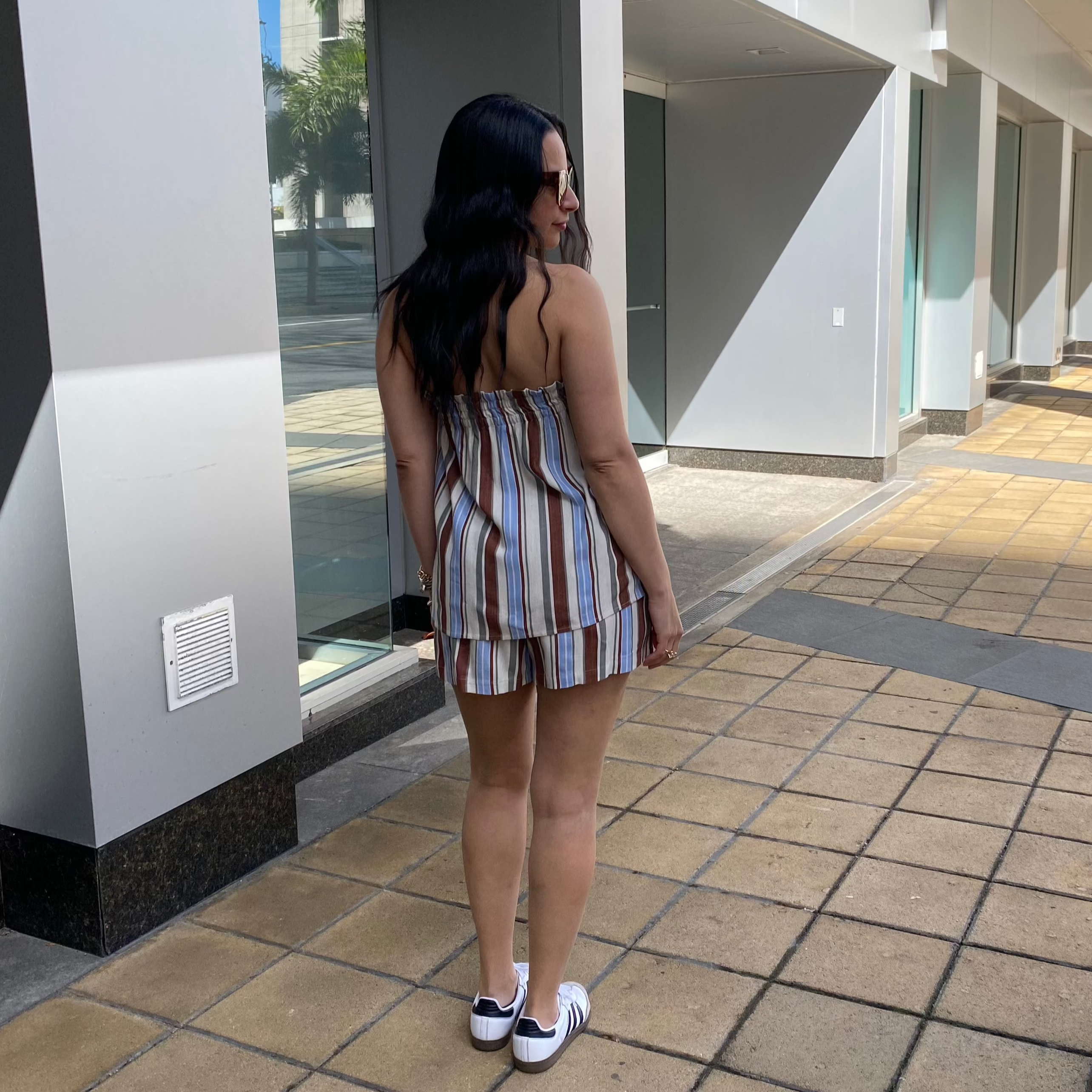 Striped Sleeveless Smocke Top & Shorts Set