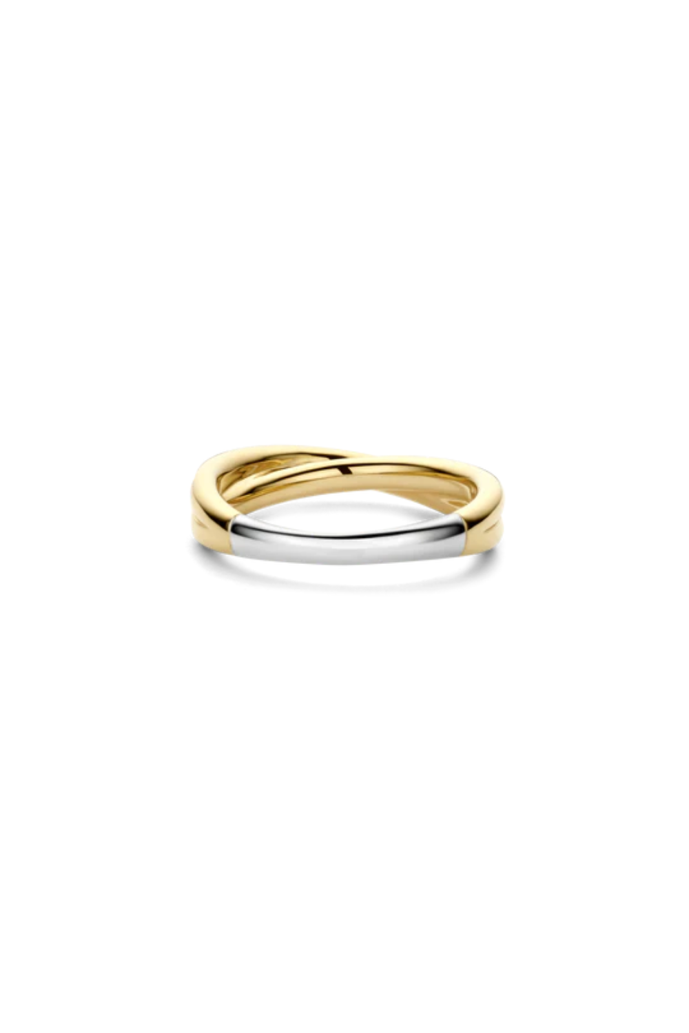 Elevate tonal contrast with the TI SENTO tricolour silver Ring 1953BY. Two sculpted bands intertwine in polished 925 sterling silver: one plated in radiant yellow gold, one finished with black zirkonia's. The crossover silhouette delivers depth and movement without bulk, making it an effortless day-to-night signature. Wear it solo for confident shine or stack it with slim bands to amplify the play of hue and texture. Nickel-free and hypoallergenic, it guarantees comfort with every wear.
