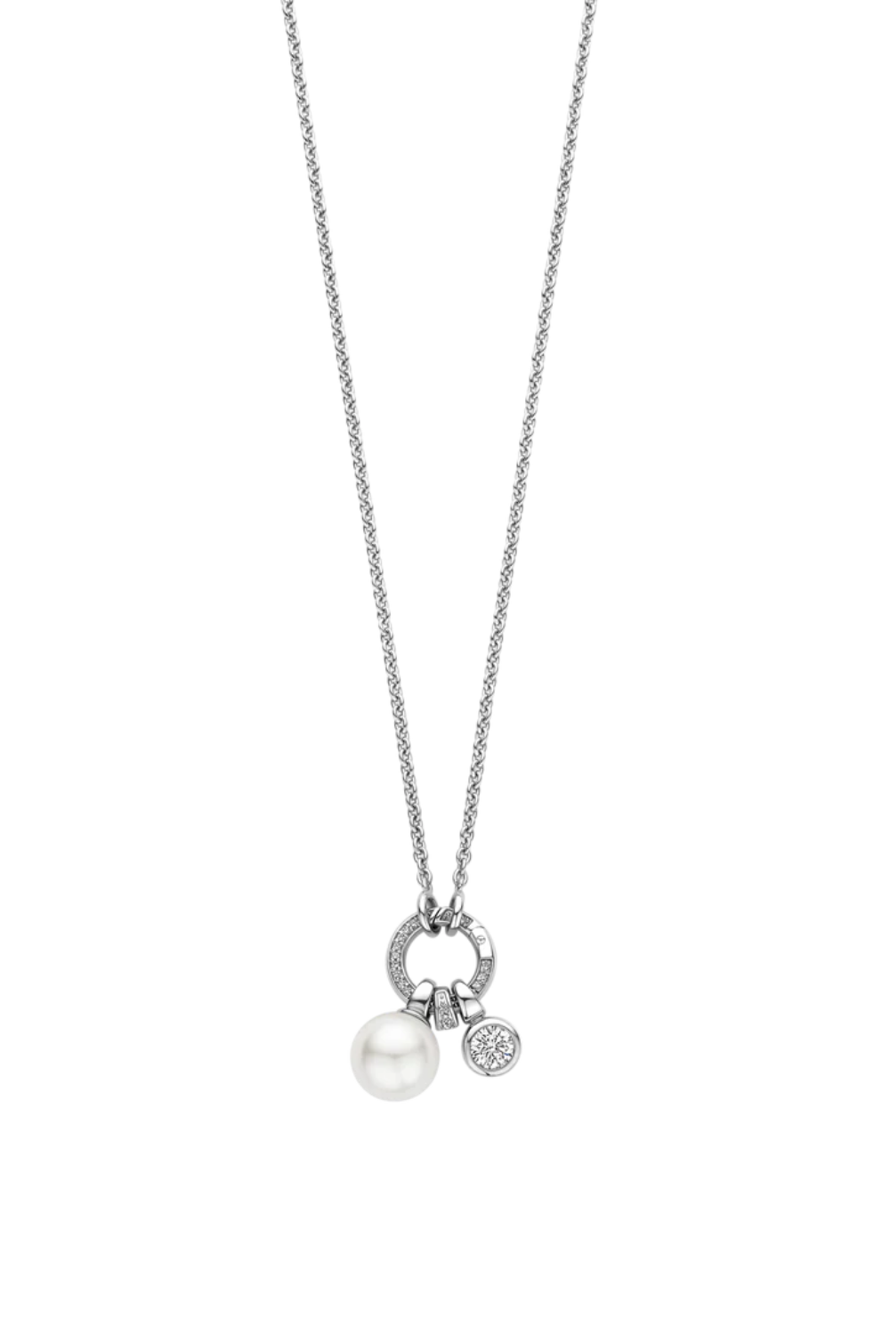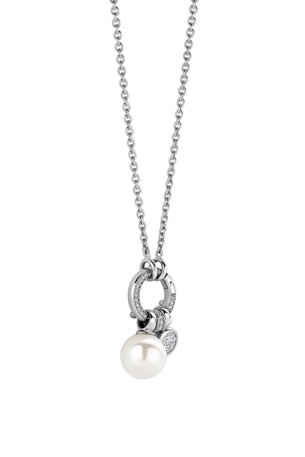 Elevate everyday elegance with this TI SENTO silver Necklace 34113PW, a delicate piece that fuses timeless elements with a playful charm. Crafted from premium 925 sterling silver and plated with platinum for lasting brilliance, this necklace features a pavé-set circle pendant adorned with two refined charms: a smooth white pearl and a bezel-set cubic zirconia. Each element adds a subtle layer of texture, light, and sophistication. This dainty pendant necklace is a versatile jewellery piece, perfect for layering with minimalist silver chains or worn solo as a signature detail. Whether you're searching for a pearl necklace, charm pendant, or a meaningful gift, this design offers enduring appeal and everyday luxury. Pair it with a classic white blouse or a soft knit to highlight its feminine details. Nickel-free and hypoallergenic, it’s designed to offer lasting comfort and effortless polish in one refined silhouette.