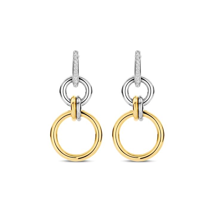 These TI SENTO Gold-Plated Interlinked Hoop Earrings 78018ZY are a bold take on modern elegance, fusing sleek geometry with timeless sophistication. Crafted from premium 925 sterling silver, these earrings feature a cascade of interlocking circles, blending polished yellow gold-plated links with luminous silver elements. A pavé-set cubic zirconia hoop anchors the design, adding a refined sparkle that catches the light with every move. The dynamic interplay of textures and tones makes these earrings effortlessly versatile—whether styled with a tailored blazer or a breezy summer dress, they add a touch of effortless chic. Nickel-free and hypoallergenic, they ensure luxurious comfort with every wear. Let these interlocking hoops be your statement of strength, fluidity, and endless style possibilities.