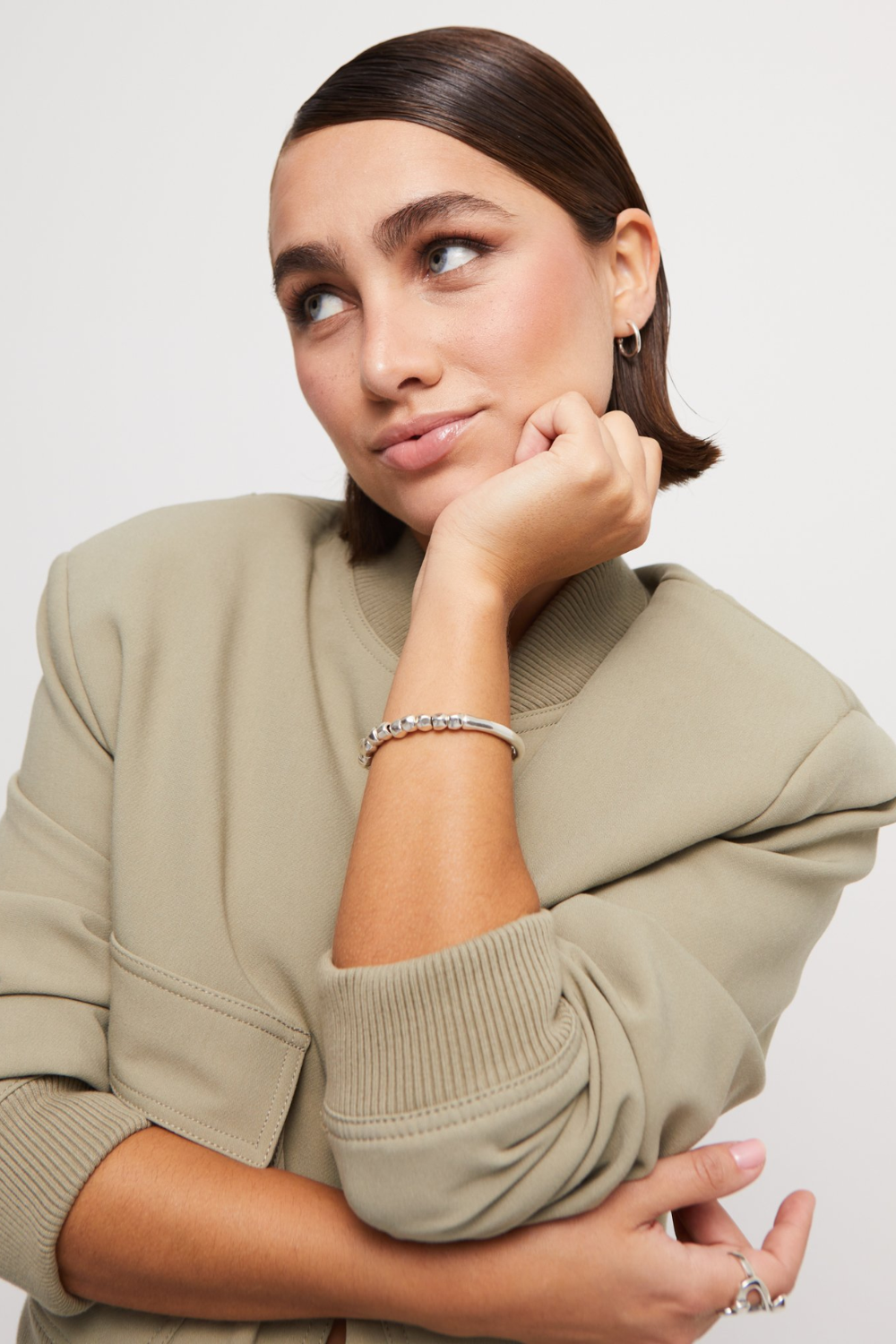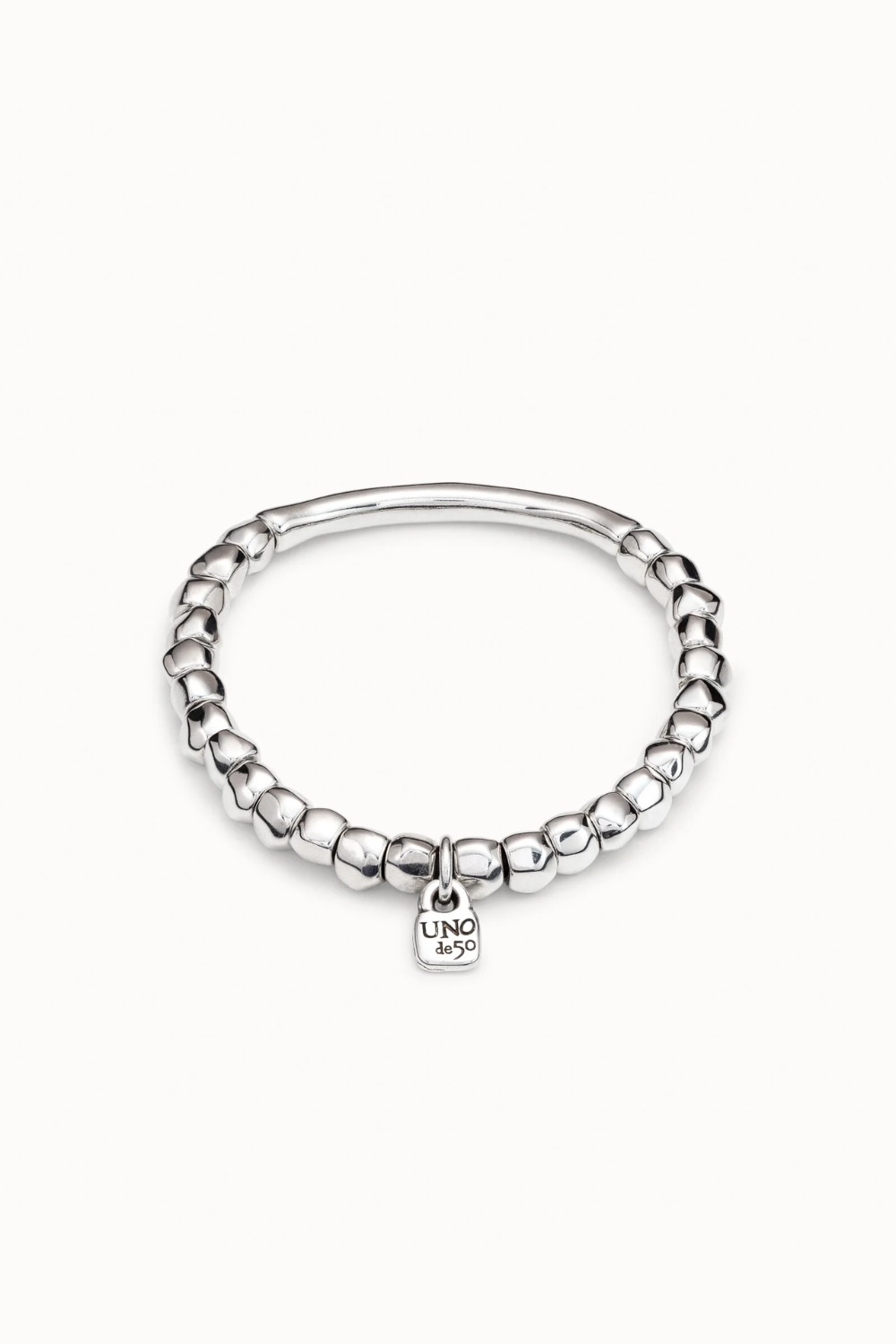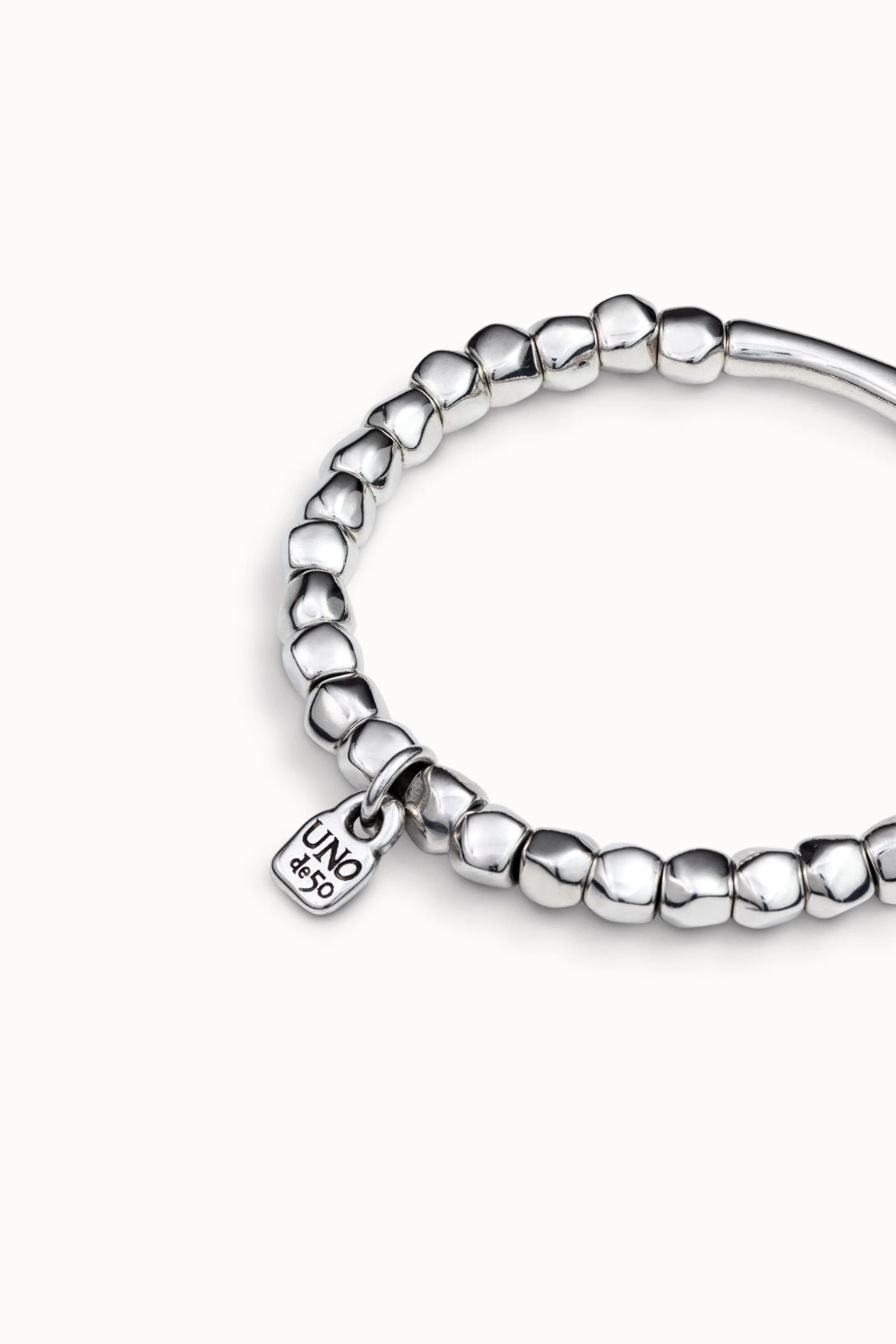 Sterling silver-plated bracelet with beads and tubular piece. 100% handmade in Spain.
