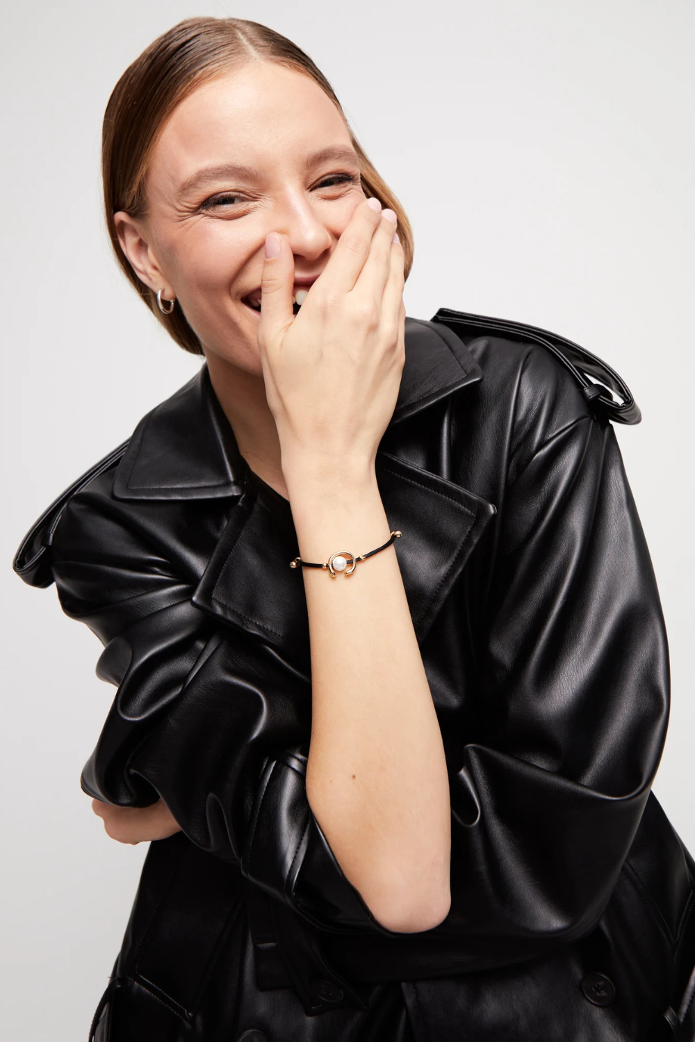 18K gold-plated black mouse tail thread bracelet with shell pearl accessory. Made in Spain with a 100% handmade process. When it comes to bracelets, more is more! For you who love to mix colors, be wild and innovative with your looks; this collection is made for you and you know it.