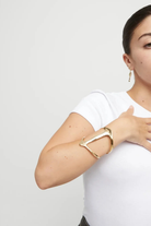 Rigid 18K gold-plated bracelet with manta ray structure. Discover the collection Ser Majestuosa, a tribute to Puerto Rico island and its people through the elegant dance of the manta ray across the sea.