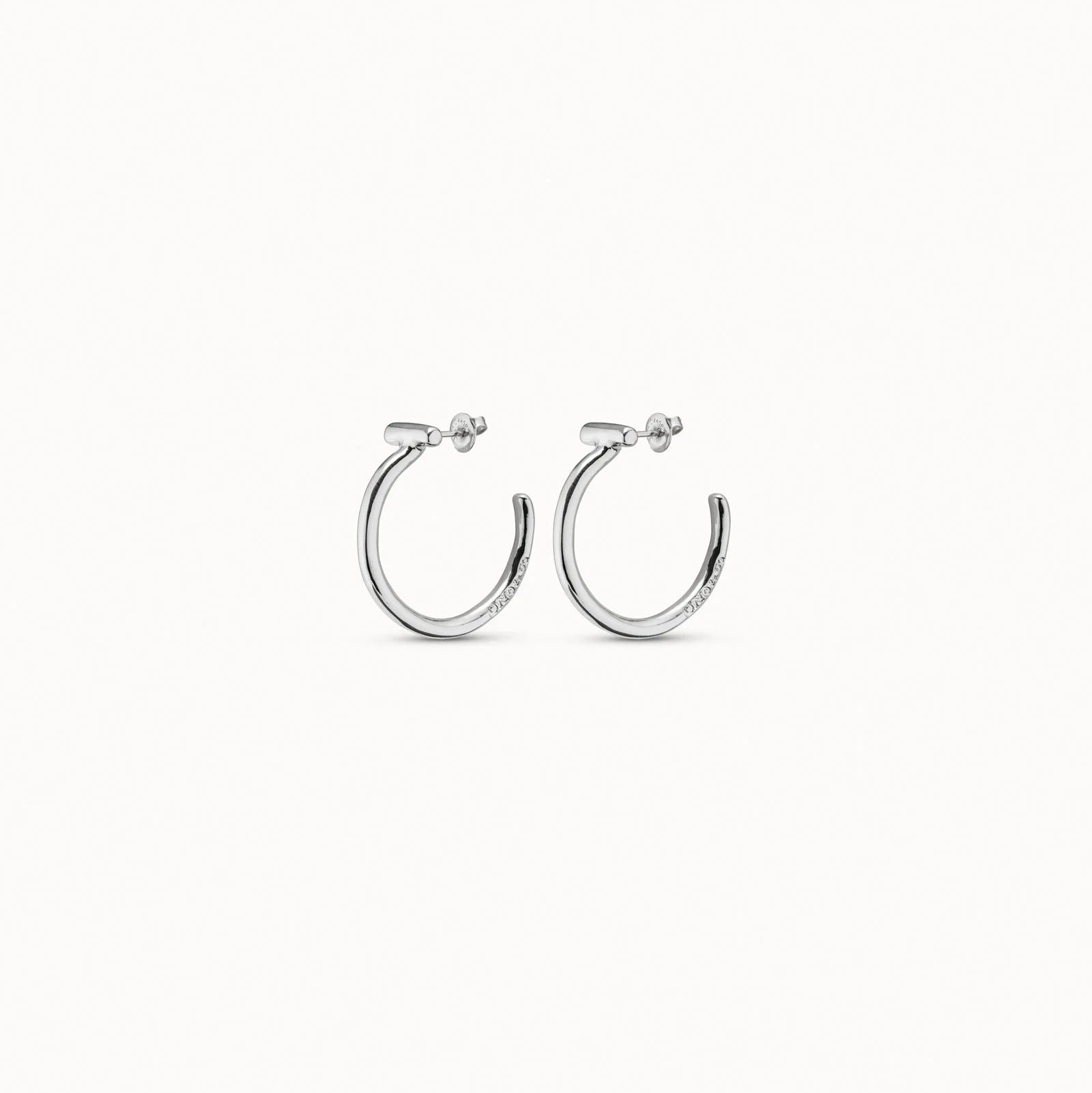 Original silver-plated metal hoops, open design and inspired by Chinese aesthetics. The hoops culminate in a small bar perpendicular to them, giving elegance and sobriety to the complement. It is a seductive jewel with which you can beautify all your looks and has been made in Spain, 100% handcraft made by UNOde50.