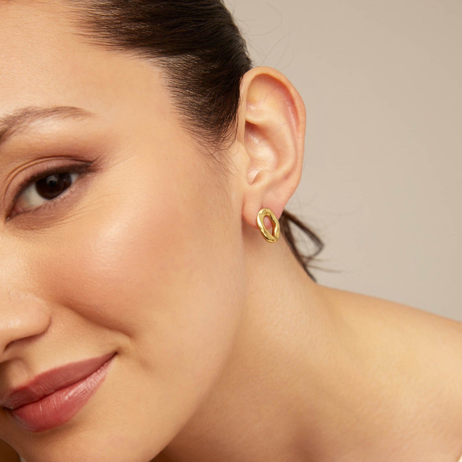 GOLD OVAL LINK EARRINGS JOYFUL||The Joyful collection combines different shapes and styles. This allows us to mix and play, to be creative and enjoy every step we take. Creativity embodied in jewelry like these earrings in the shape of small oval links. A simple design that brings the essence of UNOde50 in its irregular finish. Nut clasp with the UNOde50 logo engraved. ||This jewel is Made in Spain, 100% handcrafted, achieving a unique design finish.