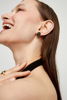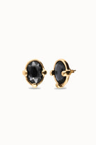 These designer earrings magnify the contrast, where golden richness frames the enigmatic elegance of the crystal.