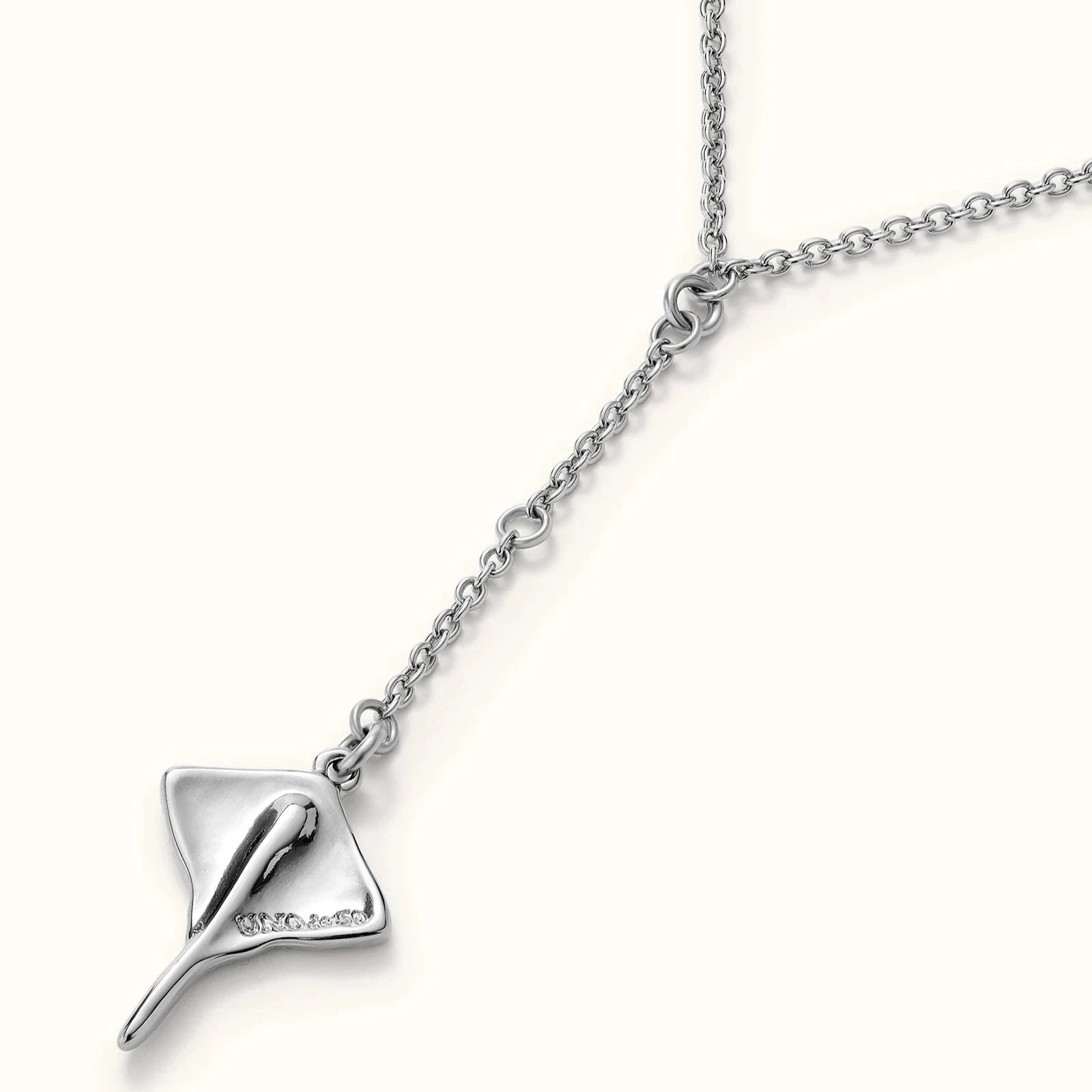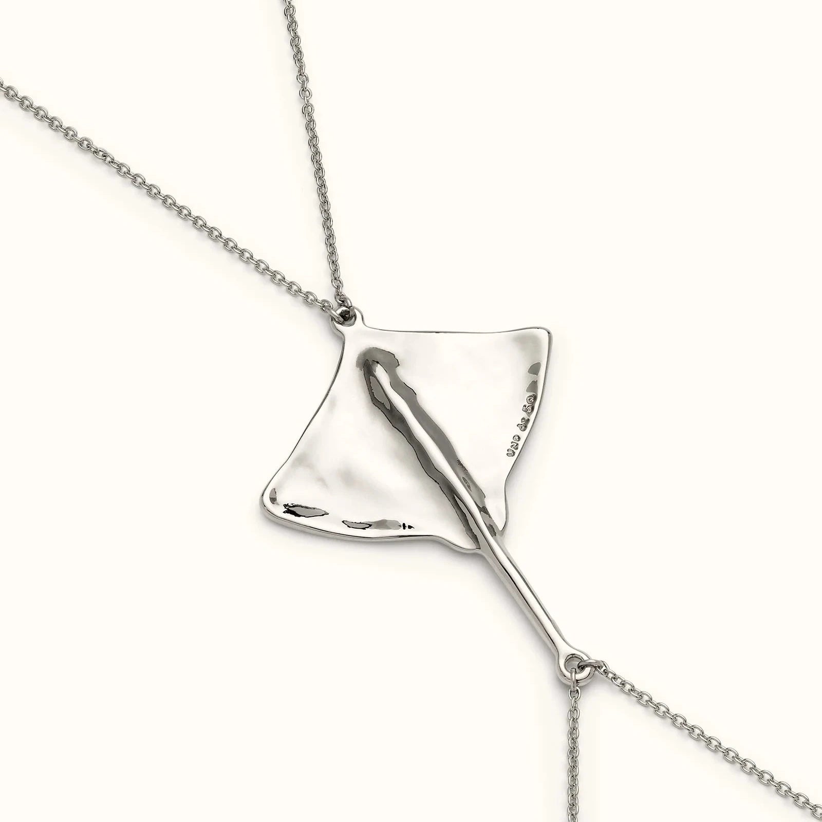 Sterling silver-plated body pendant with manta ray. Ser Majestuosa is a tribute collection to Puerto Rico island and its people through the indomitable spirit of the manta ray.