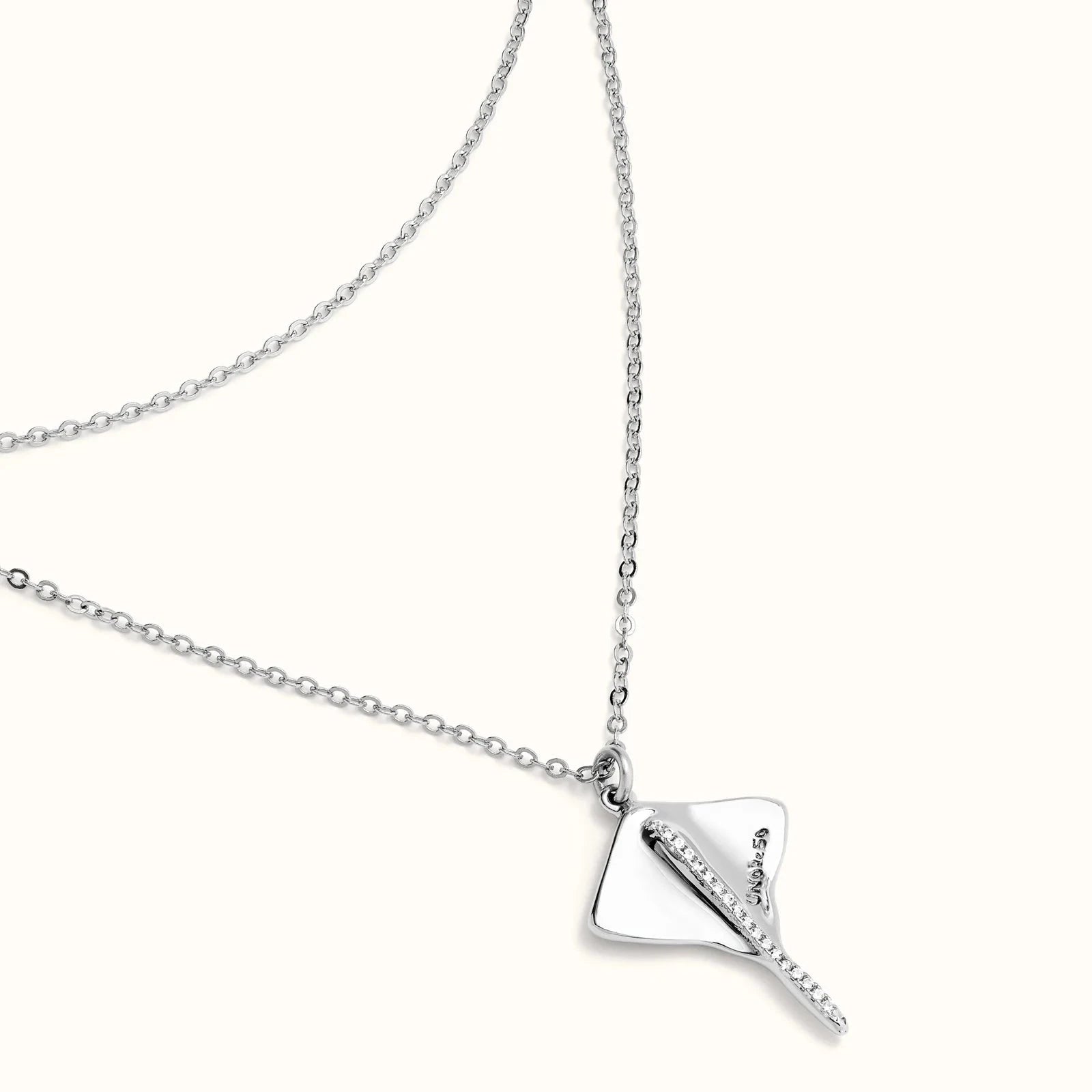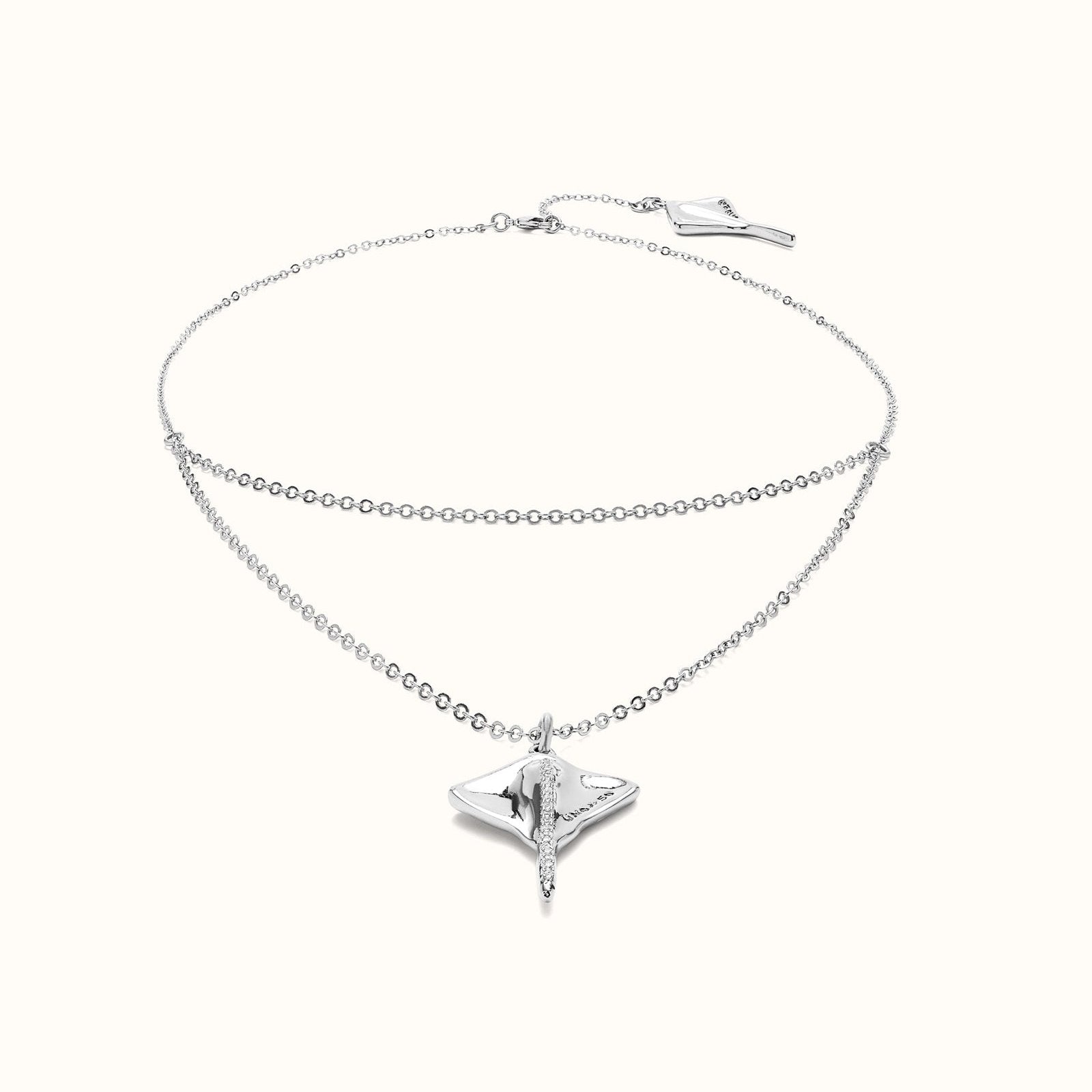 Double sterling silver-plated chain with topaz and manta ray. The Ser Majestuosa collection is a tribute to Puerto Rico island and its people through the elegance of the manta ray across the sea.