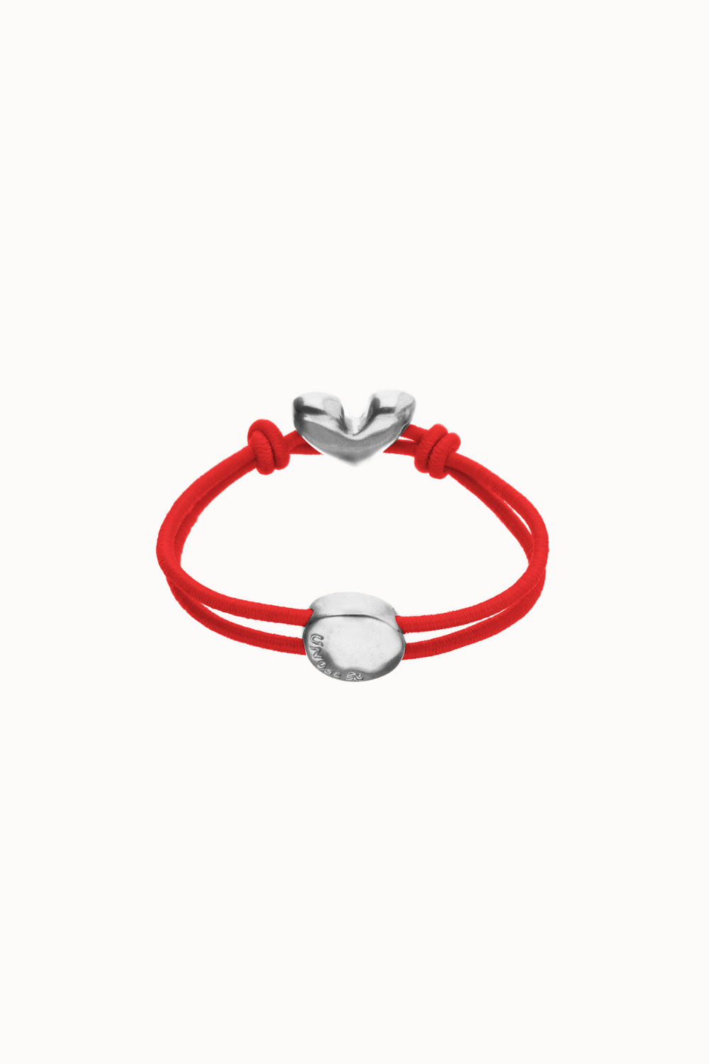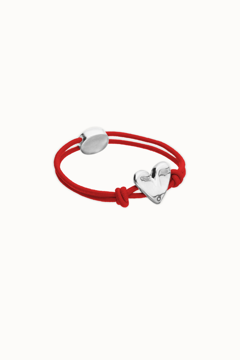 Red elastic thread bracelet with heart. When something inside you beats strongly, there is only one way to listen to it: let go. The Beat Collection is a celebration of letting go of the reins and letting your heart lead the way. A handmade heart, imperfect, but real. Because the result of living this way is a heart sculpted with your own hands.