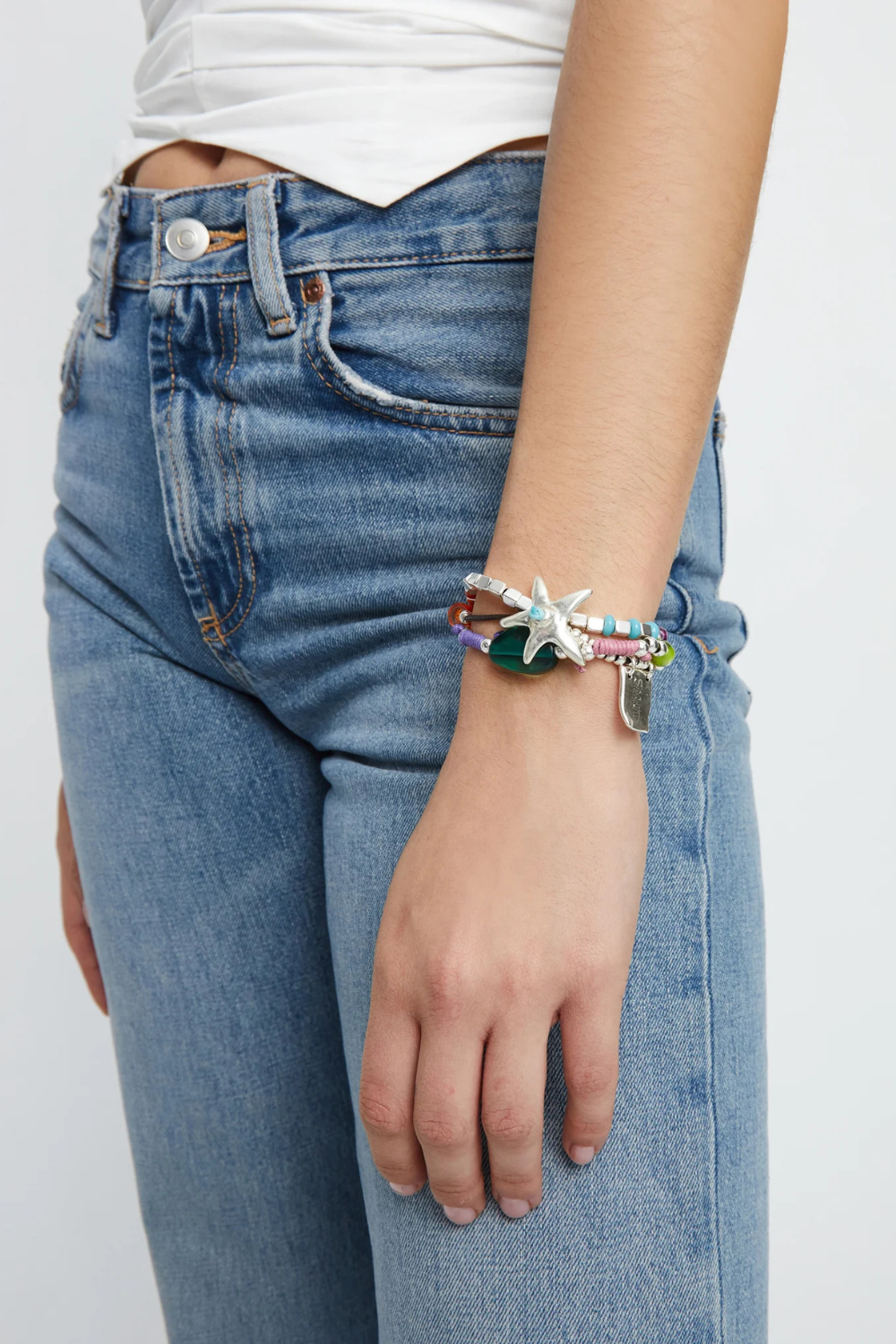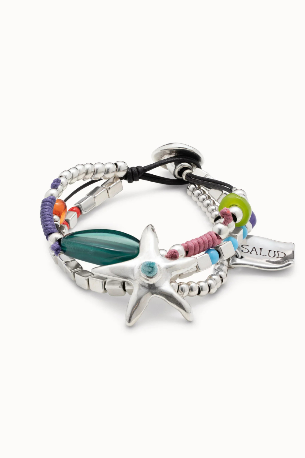 Sterling silver-plated bracelet with multi-strand design, colored resin beads, beads and the message “health”. Made in Spain under a handcrafted process.
