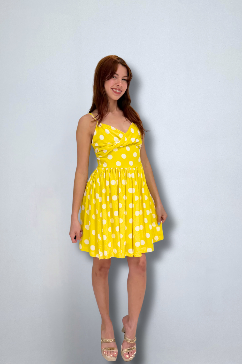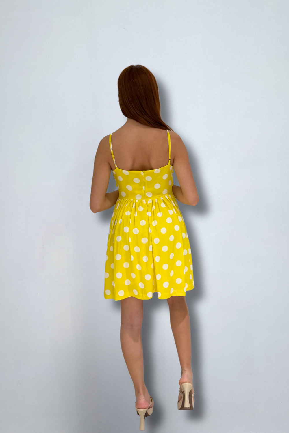 polka dot mini dress, a delightful blend of vintage-inspired charm and modern sophistication.