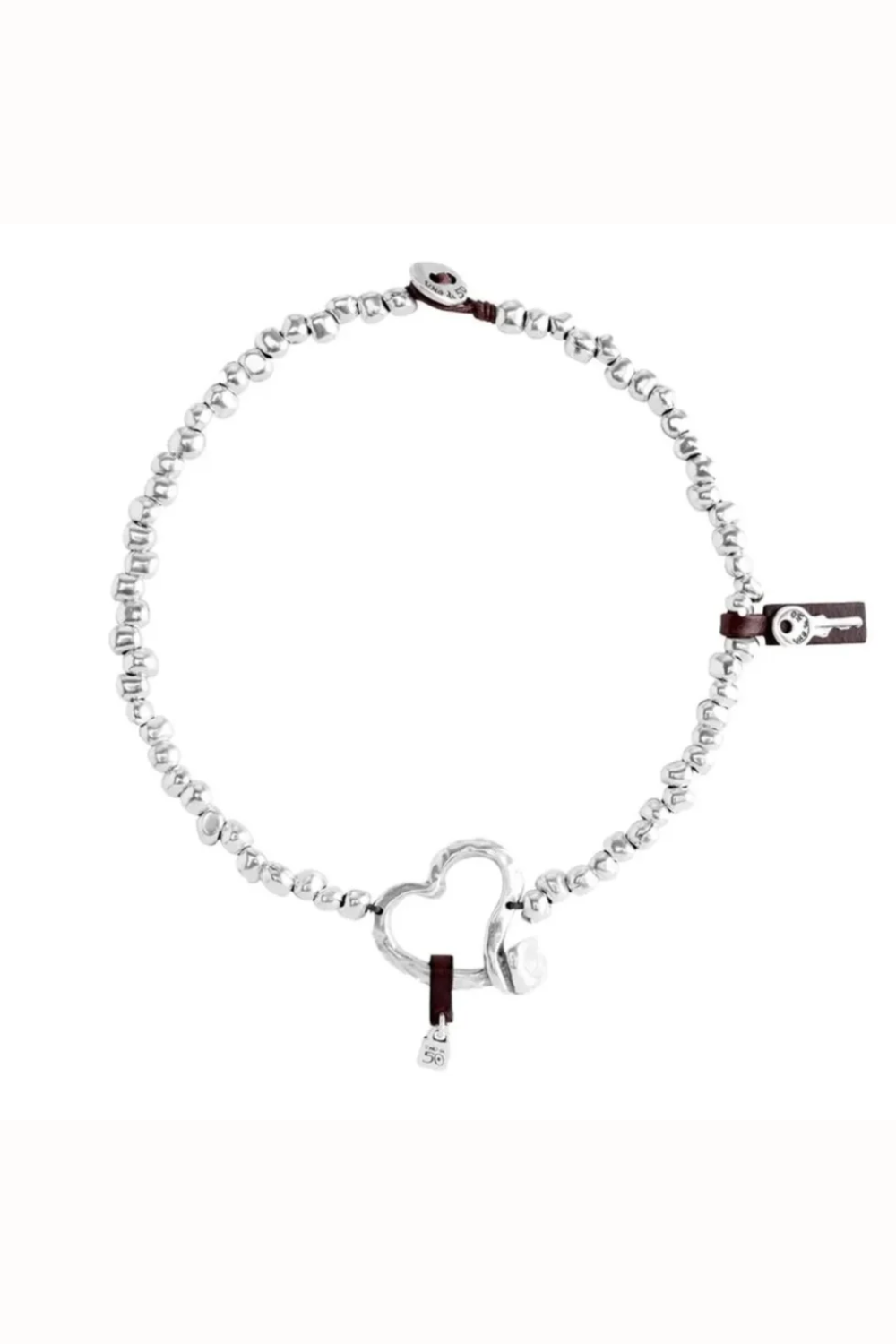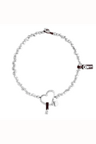Gargantilla de mujer en aleación de metal bañada en plata con corazón y llave para abrir el candado.