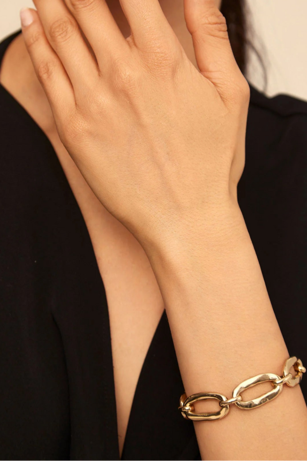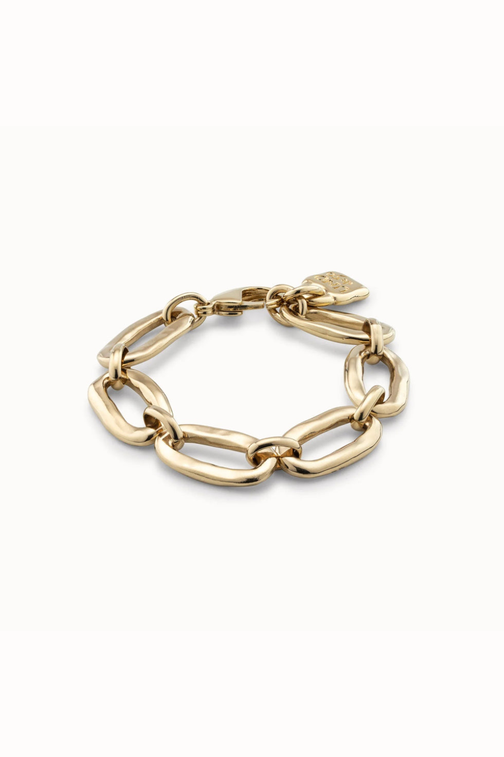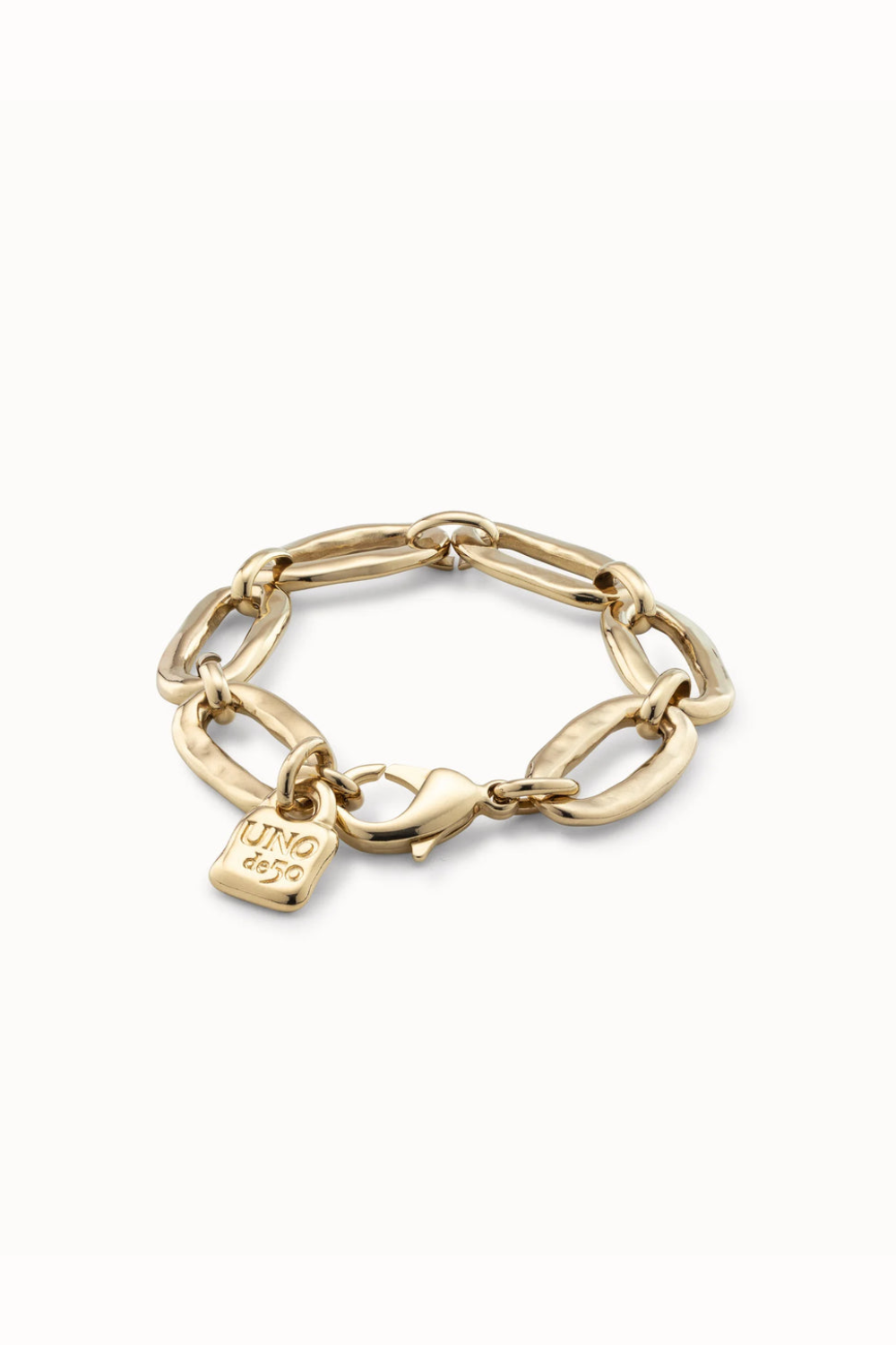 Pulsera de mujer de eslabones ovalados, mixto bañado en oro y con candado UNO de 50.