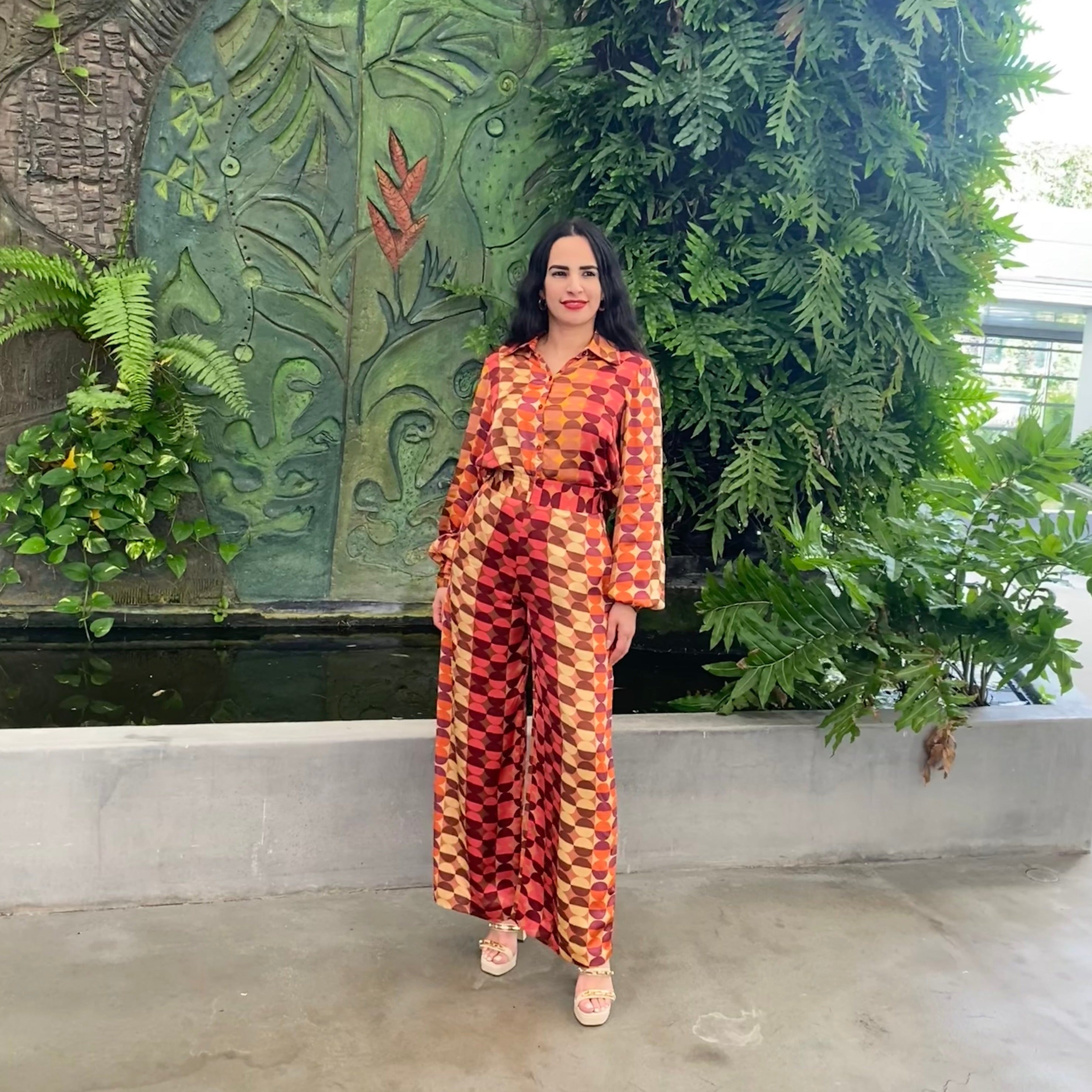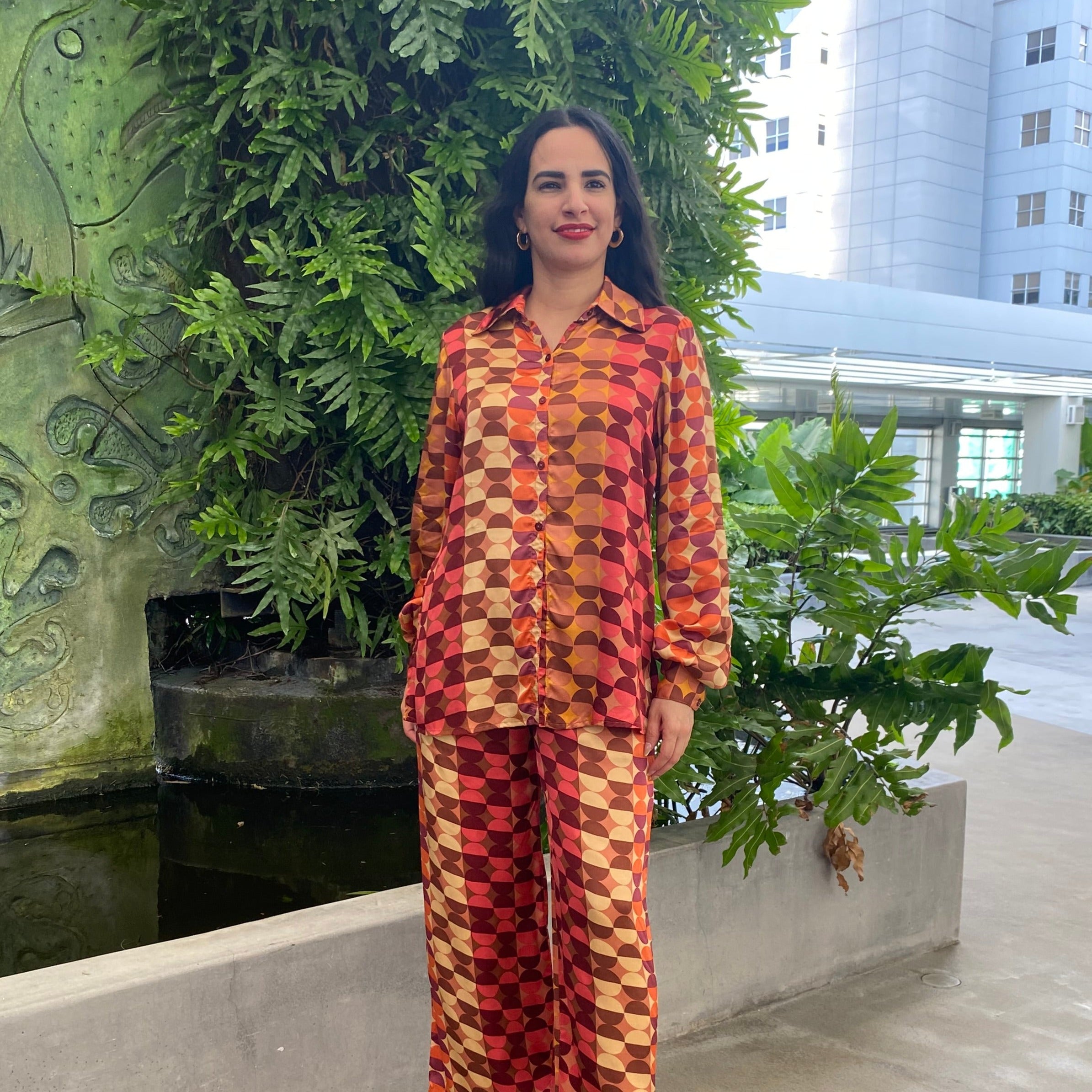 A classic piece full of charm. Our satin shirt in the Meia Lua print has a collar, front buttons and a regular length.