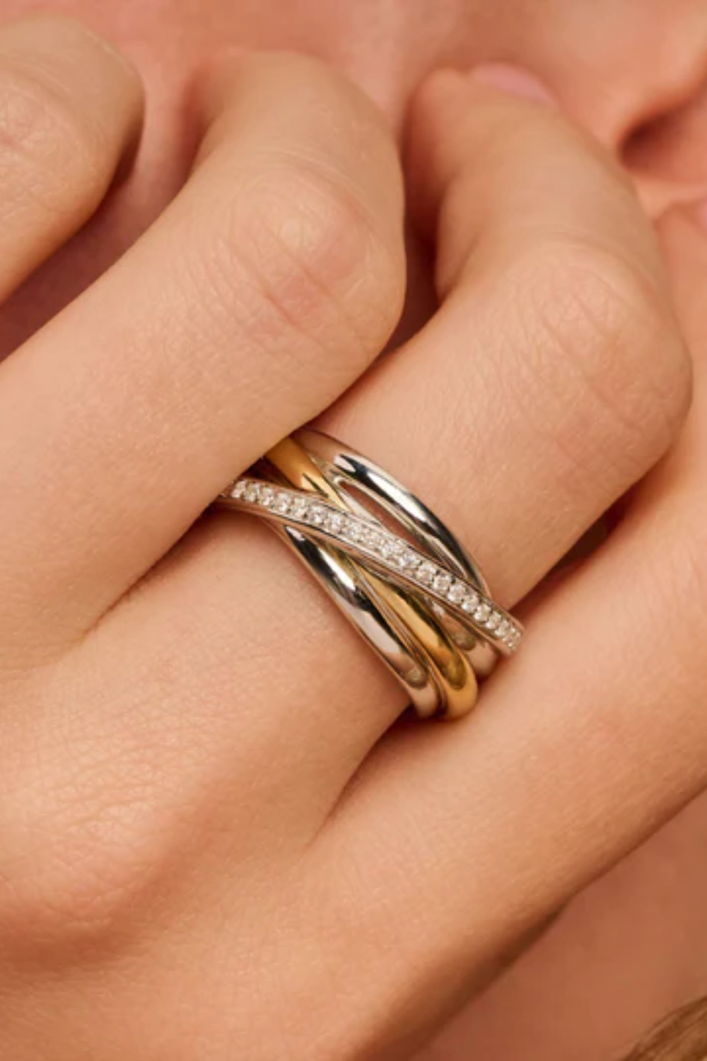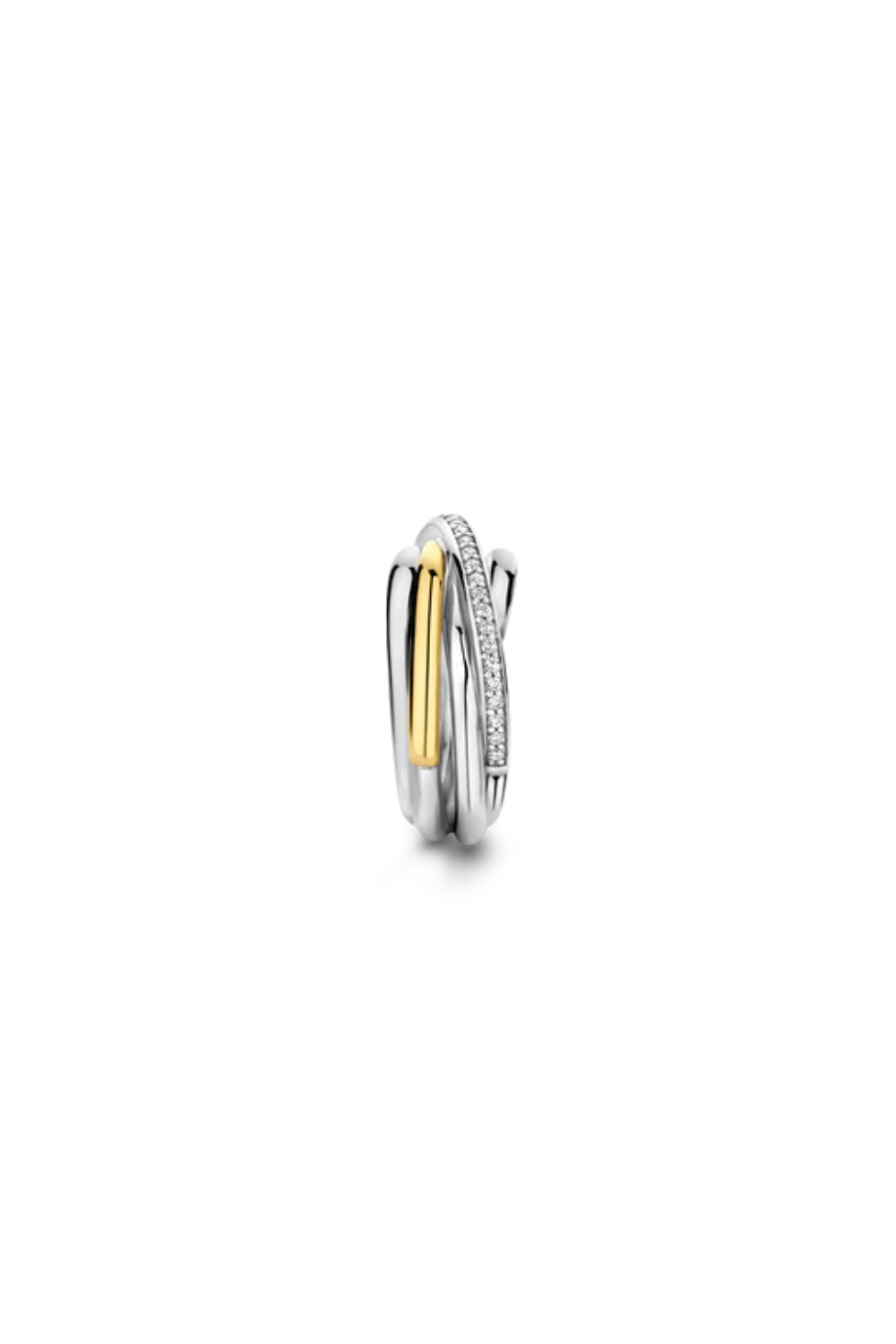 This TI SENTO gold-plated ring 12318ZY is a captivating blend of sophistication and glamour. It showcases fine intertwined bands featuring a harmonious mix of premium silver, radiant yellow gold-plating, and dazzling cubic zirconia pave. Crafted from premium 925 sterling silver, it is plated with platinum in order to protect it from daily wear and keep it luminous. Its intertwined design symbolises balance and makes it a perfect statement piece for both day and night. Wear this ring to make a bold statement or stack it with others for a curated and personalised look. Like all our jewellery, this ring is nickel-free and hypoallergenic, ensuring not just style, but also comfort and quality.