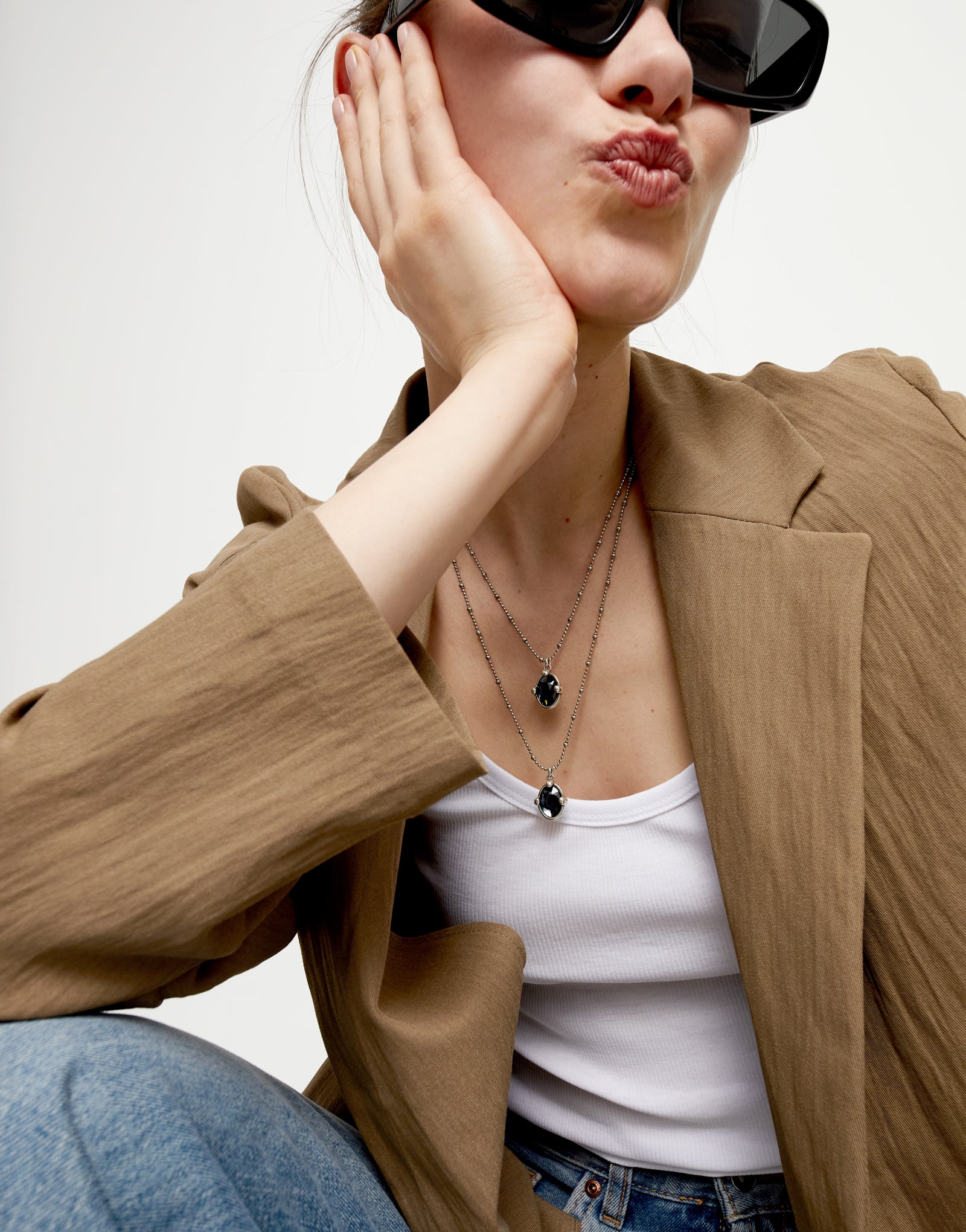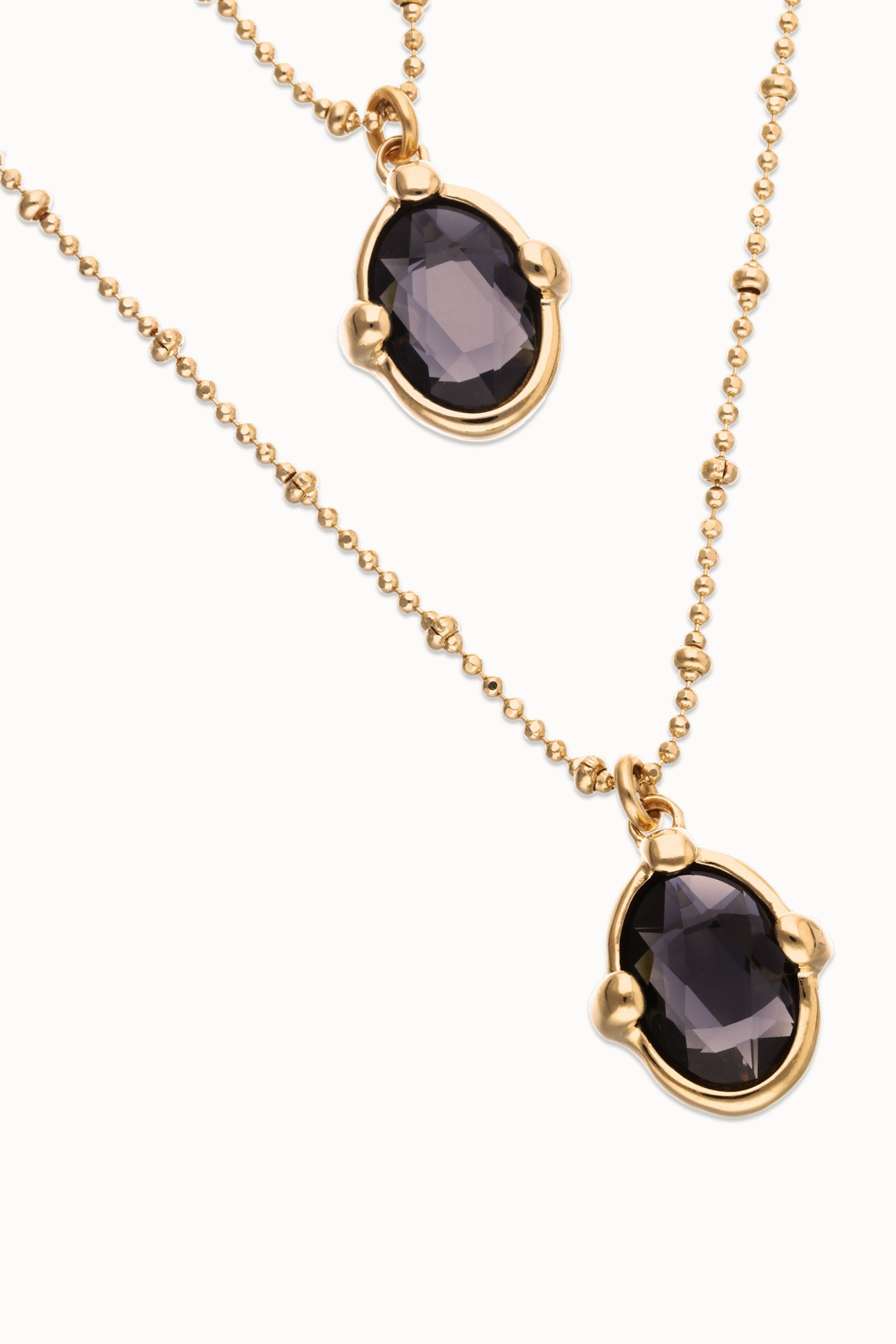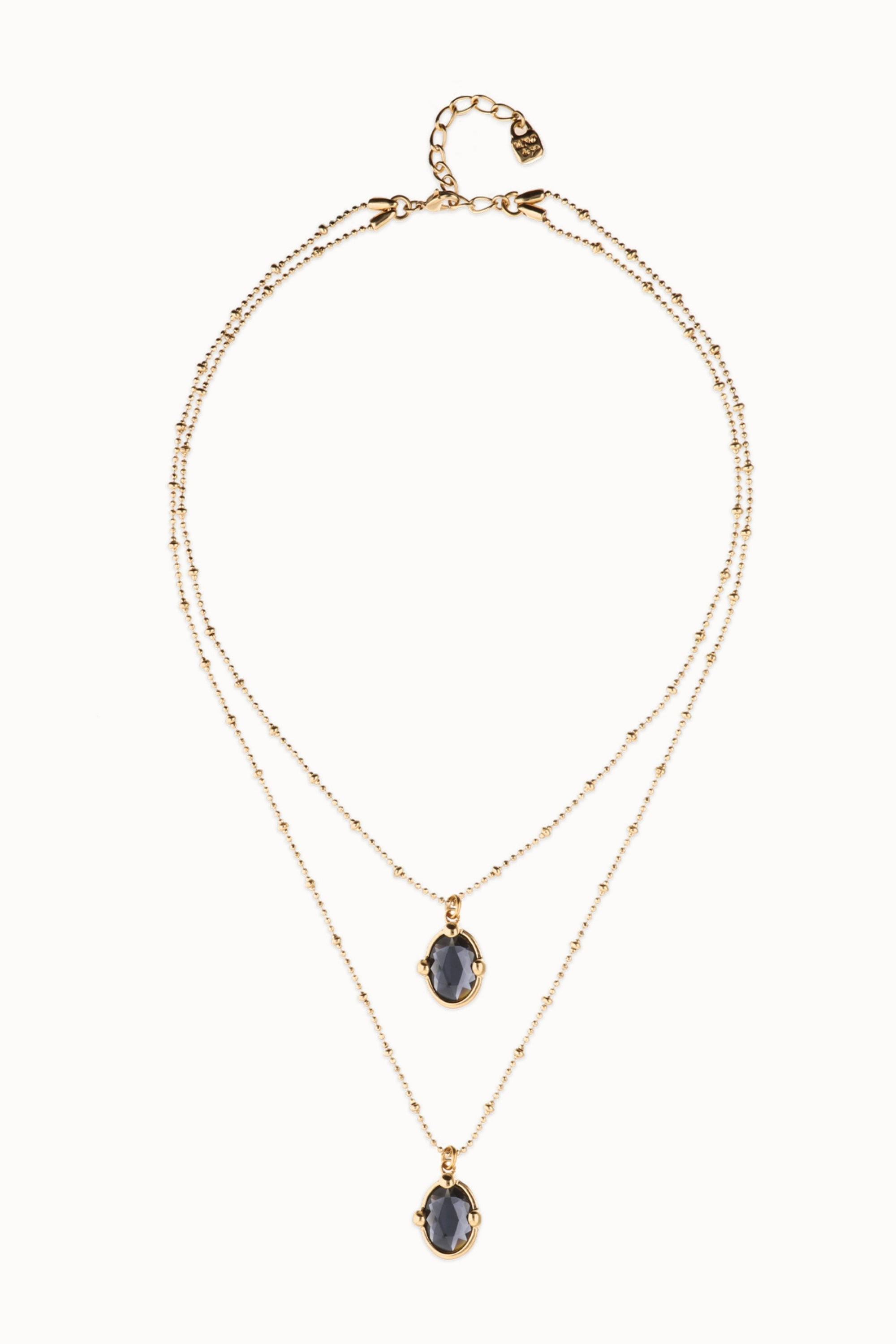 Multi strand necklace with two black oval faceted crystals