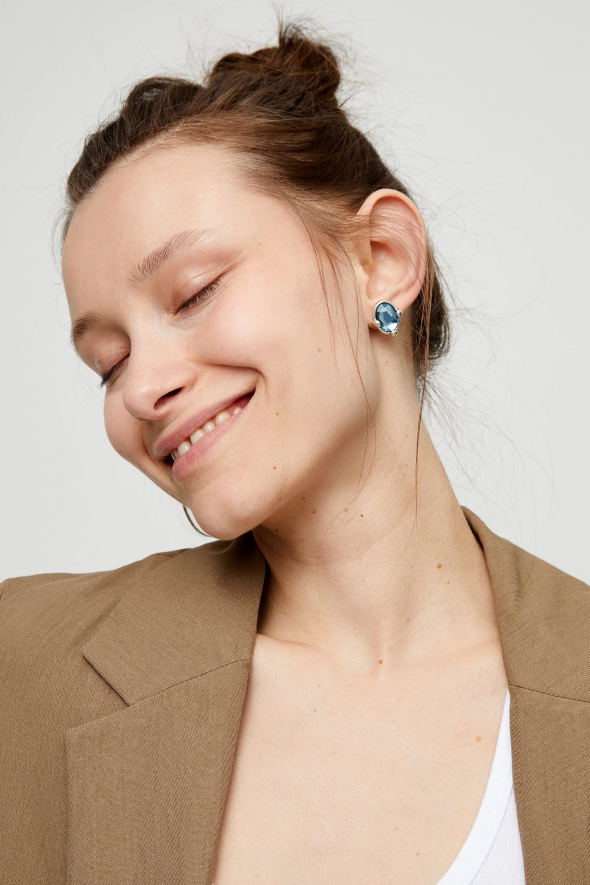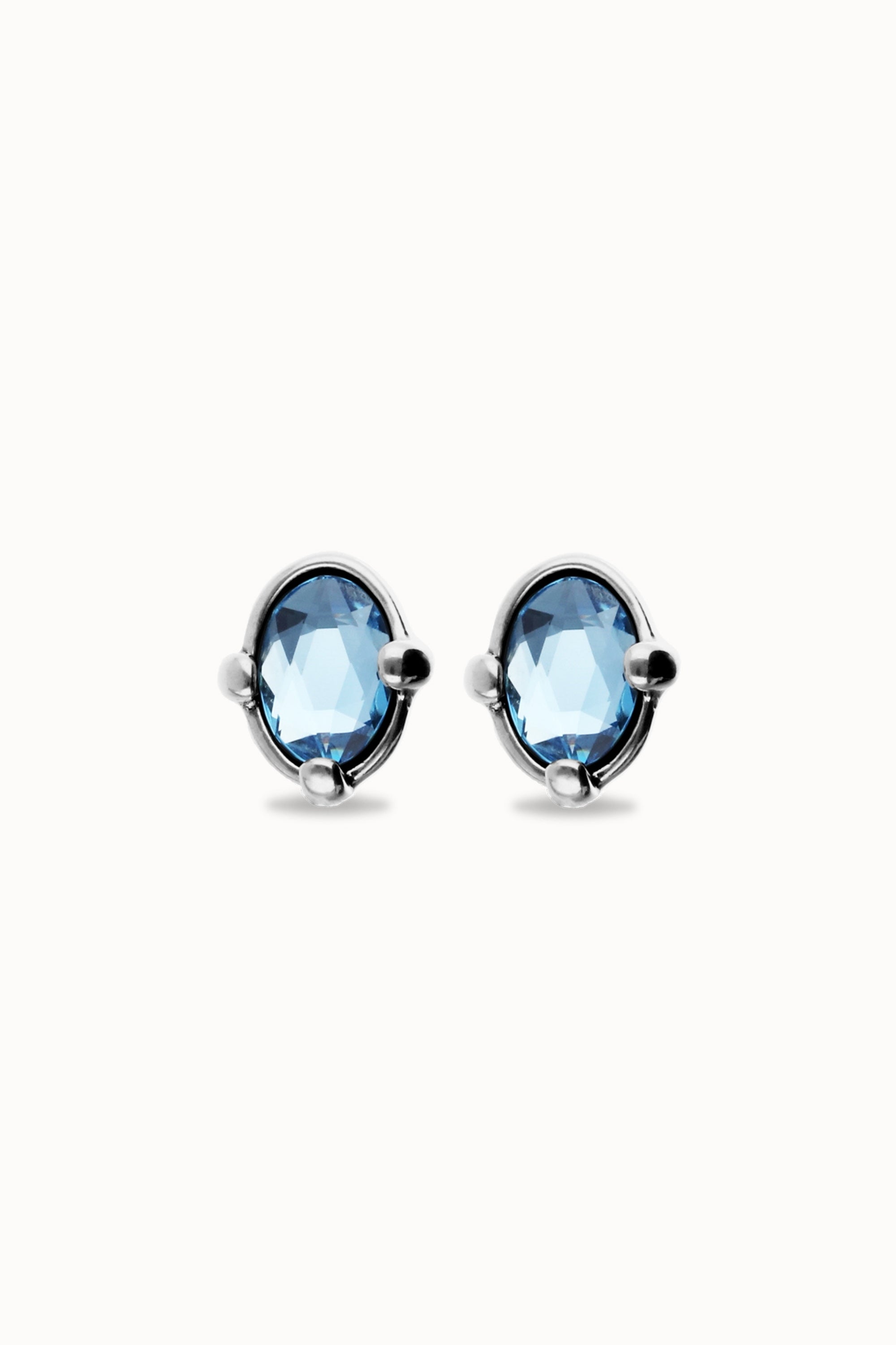 Studs with blue oval faceted crystals
