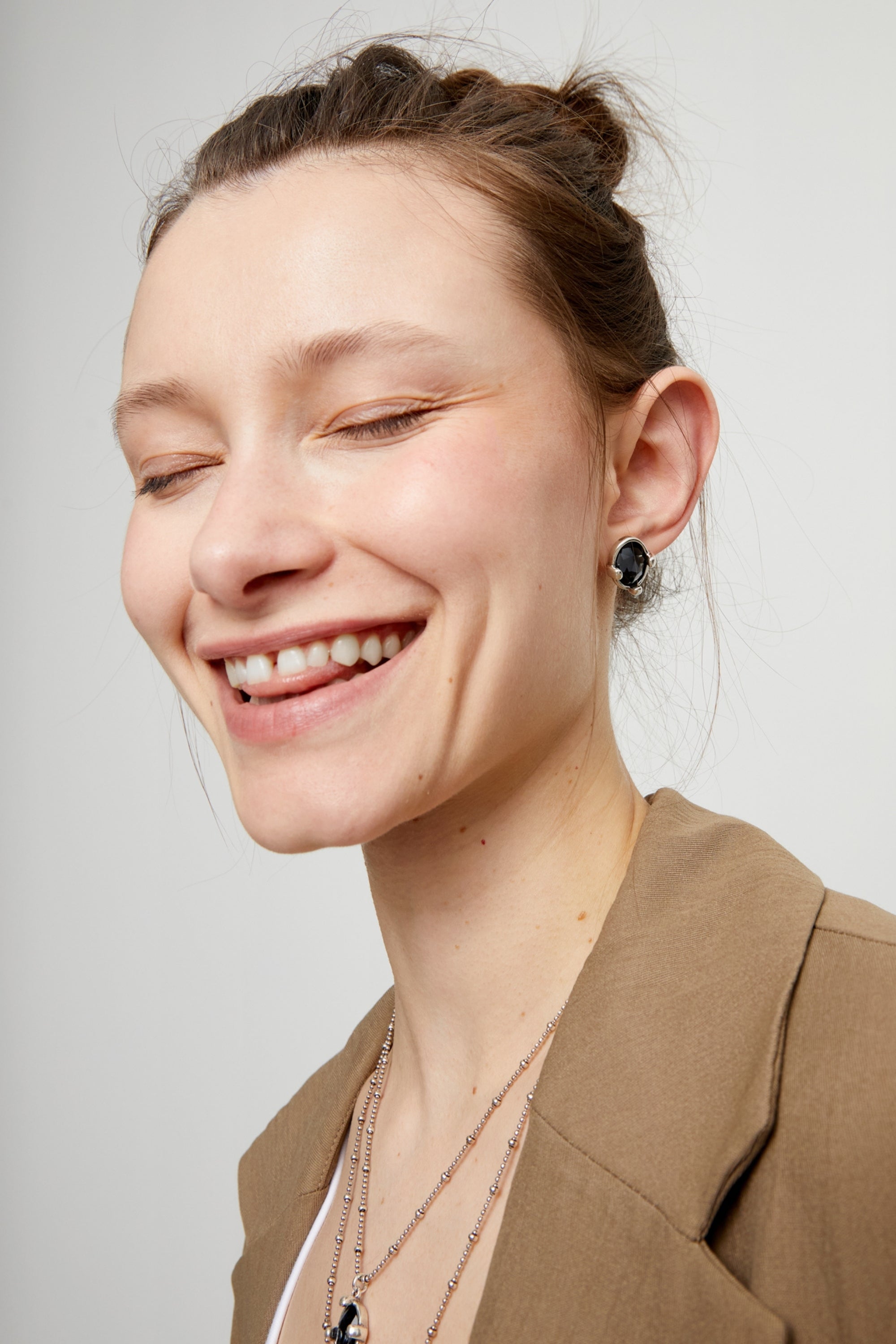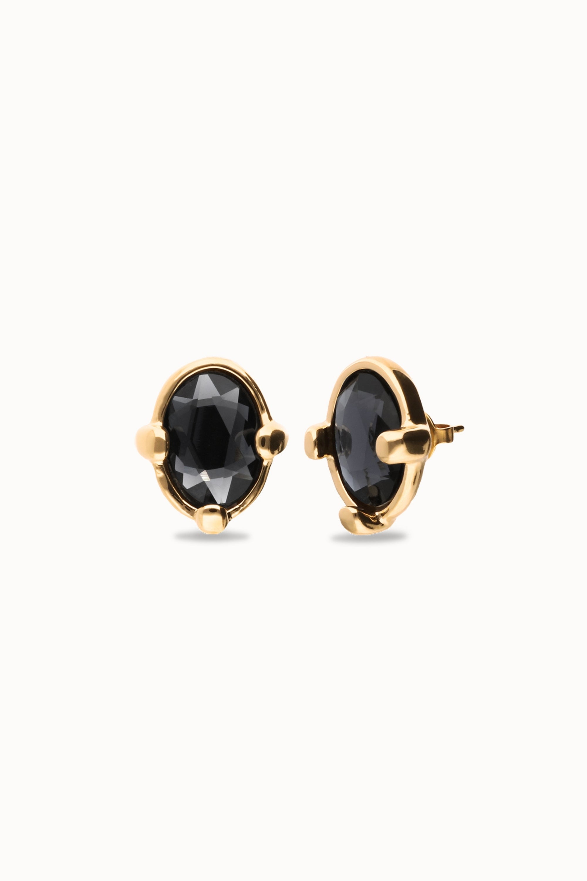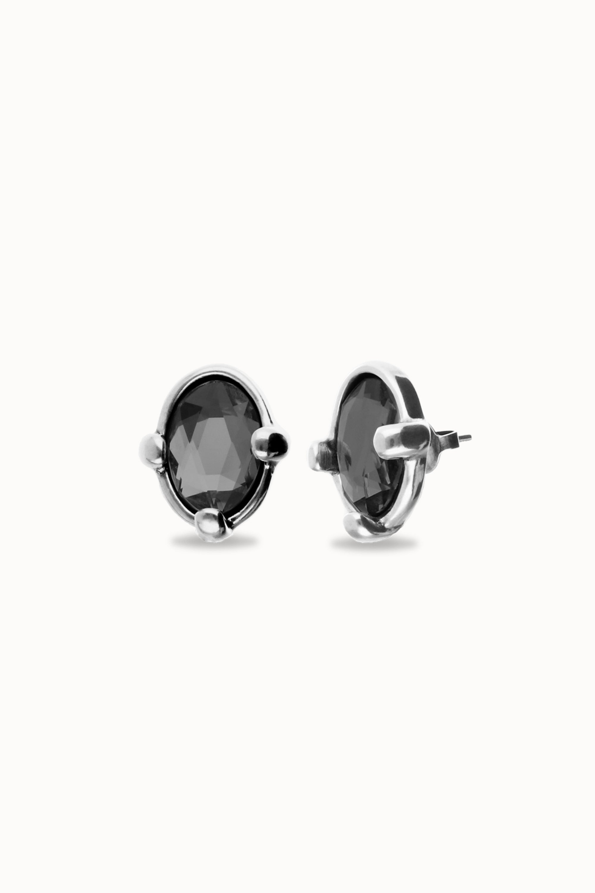 Studs with black oval faceted crystals