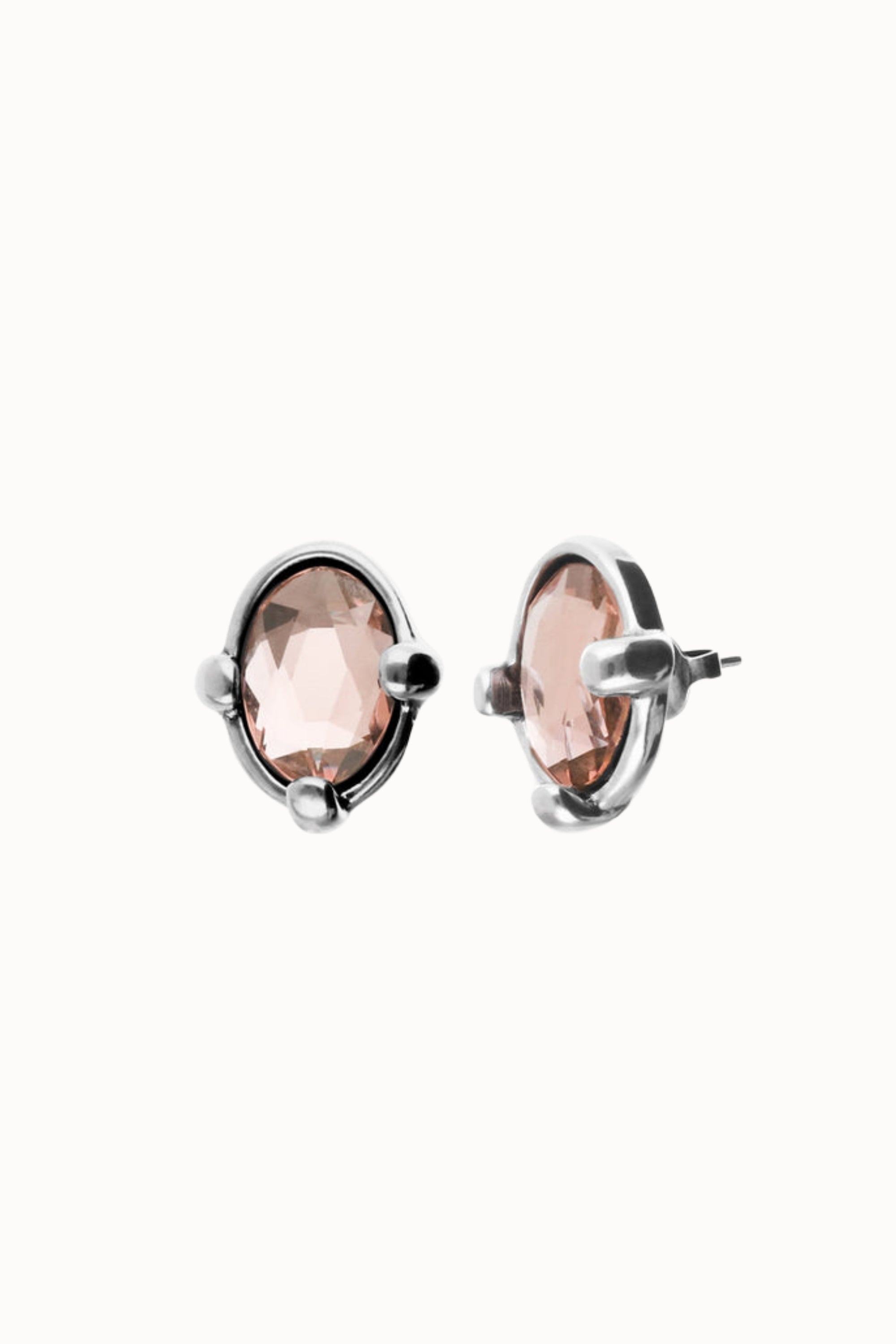 Studs with pink oval faceted crystals