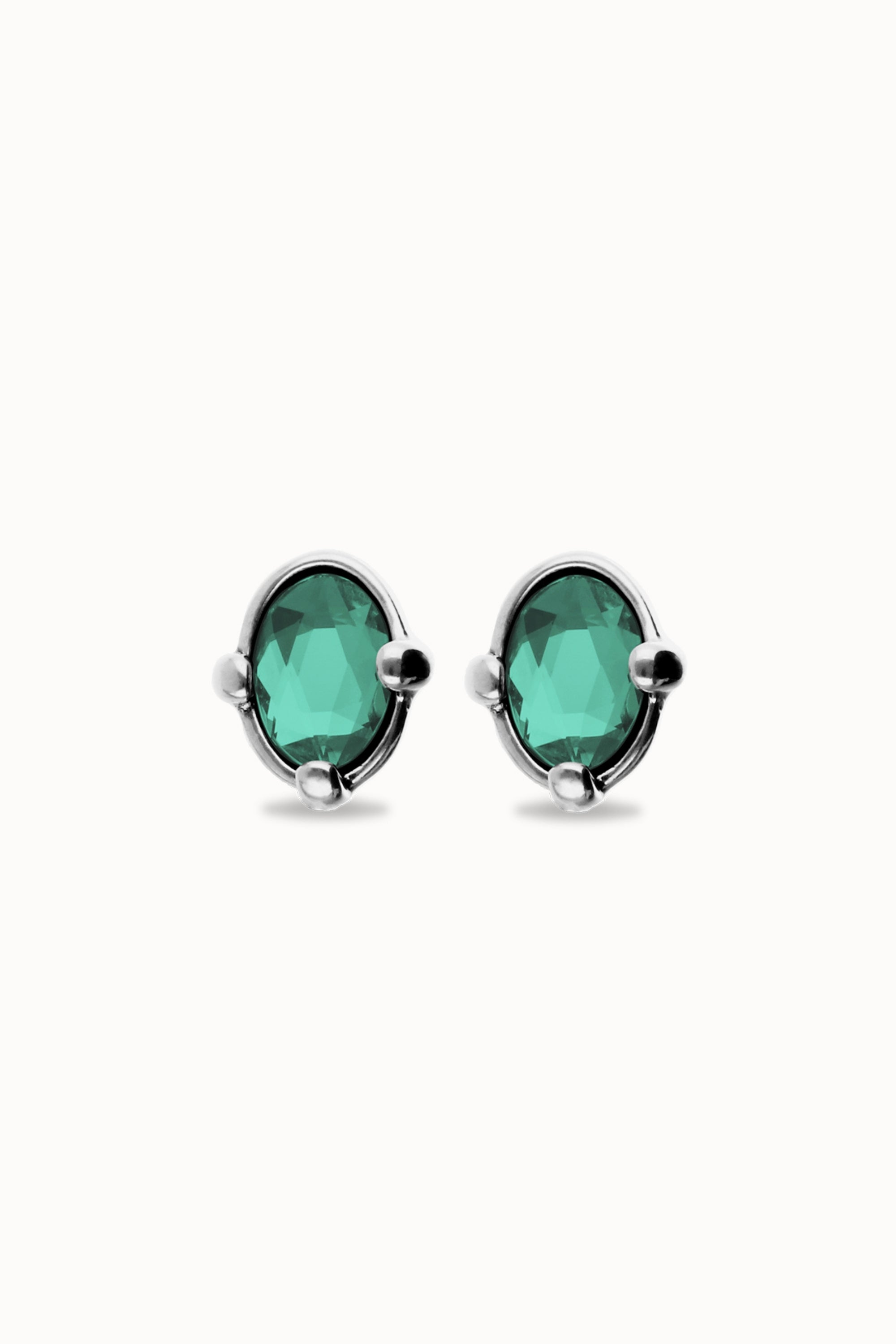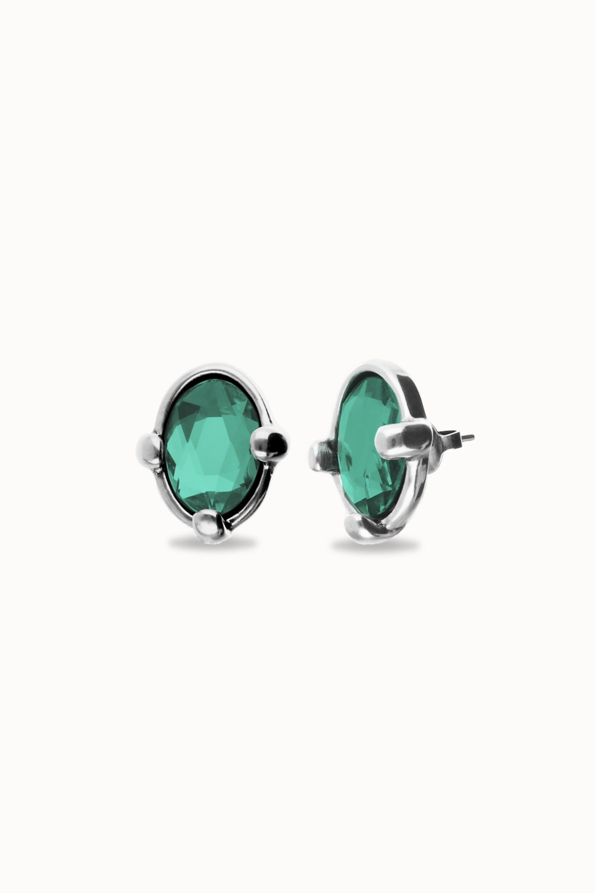 Studs with oval green faceted crystal