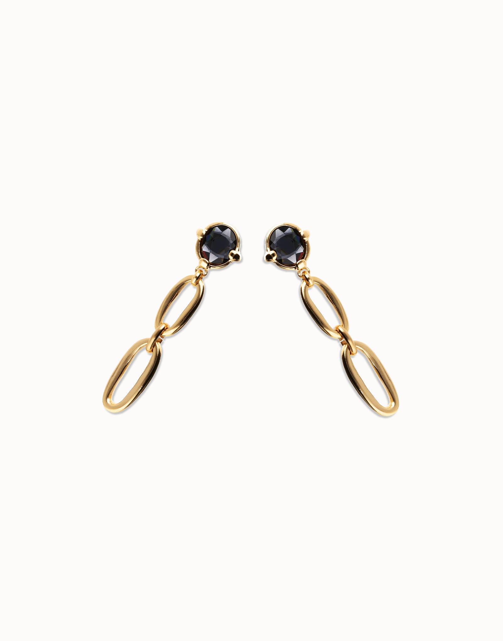 Drop earrings with faceted black crystal and links