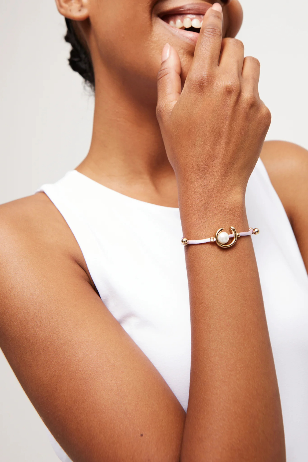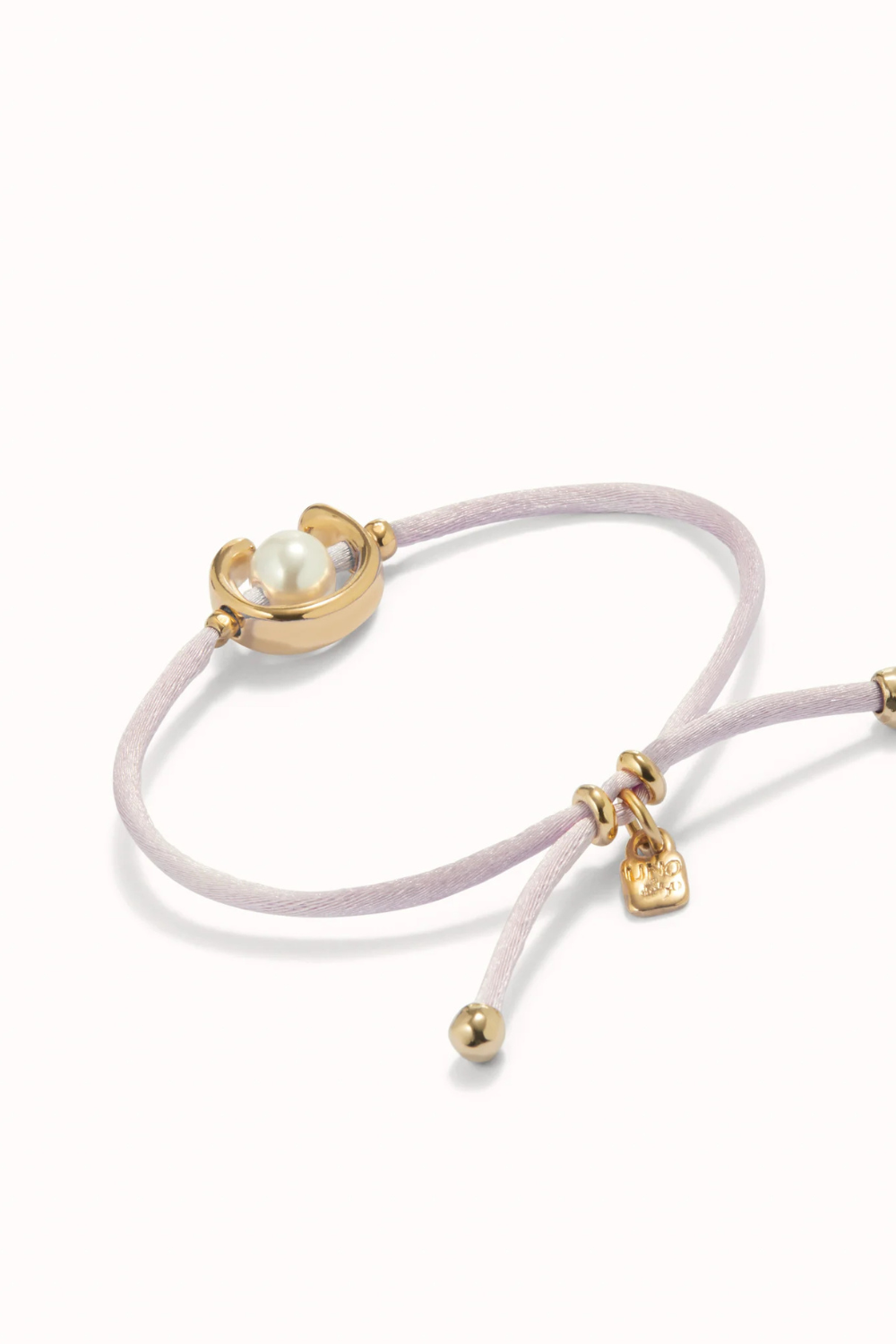 18K gold-plated lilac mouse tail thread bracelet with shell pearl accessory. Made in Spain with a 100% handmade process. When it comes to bracelets, more is more! For you who love to mix colors, be wild and innovative with your looks; this collection is made for you and you know it.