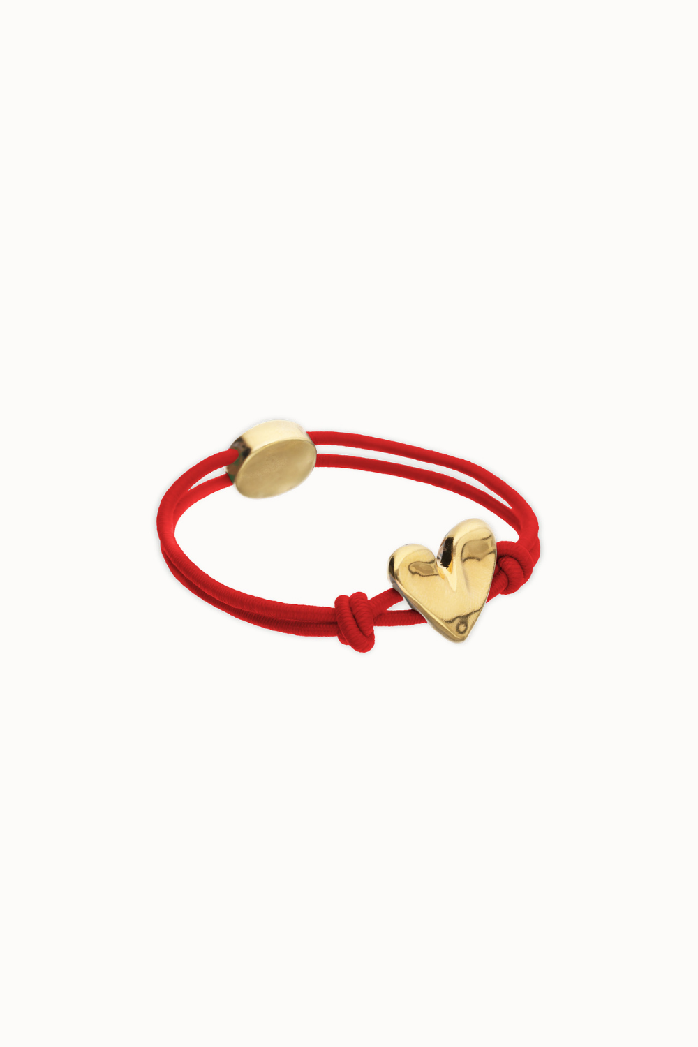 Red elastic thread bracelet with heart.When something inside you beats strongly, there is only one way to listen to it: let go. The Beat Collection is a celebration of letting go of the reins and letting your heart lead the way. A handmade heart, imperfect, but real. Because the result of living this way is a heart sculpted with your own hands.