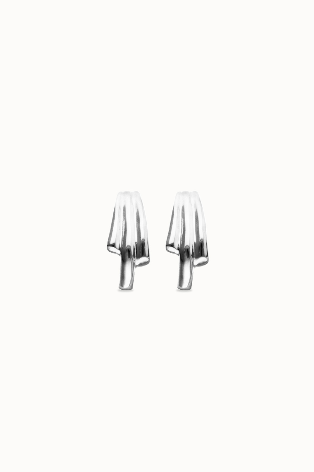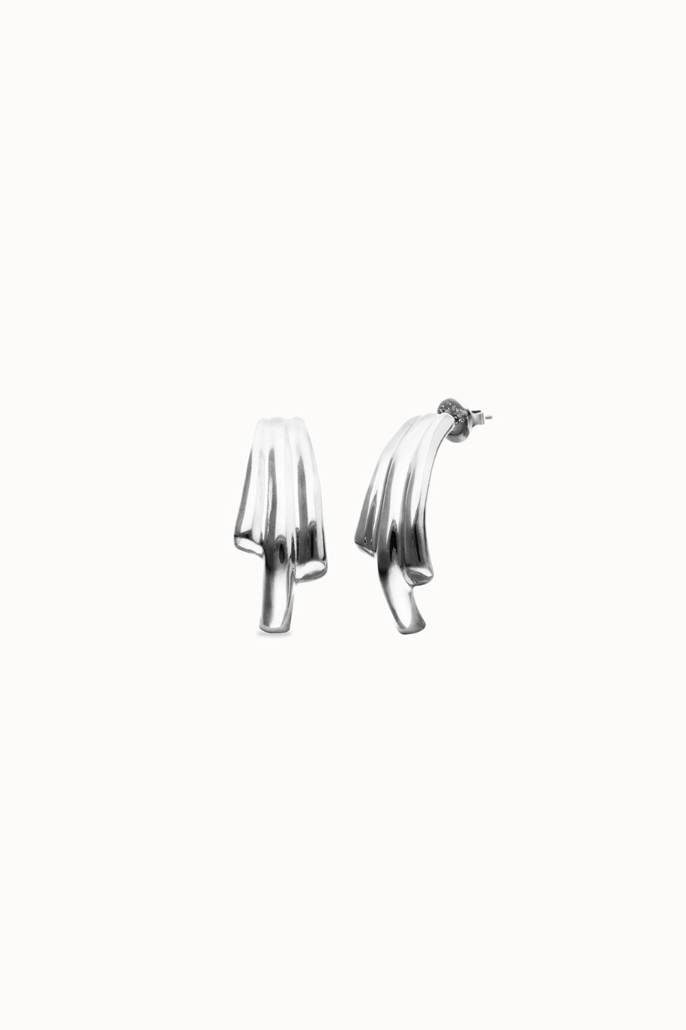 Earrings with three elongated organic shapes that evoke a connection with nature and your roots silver