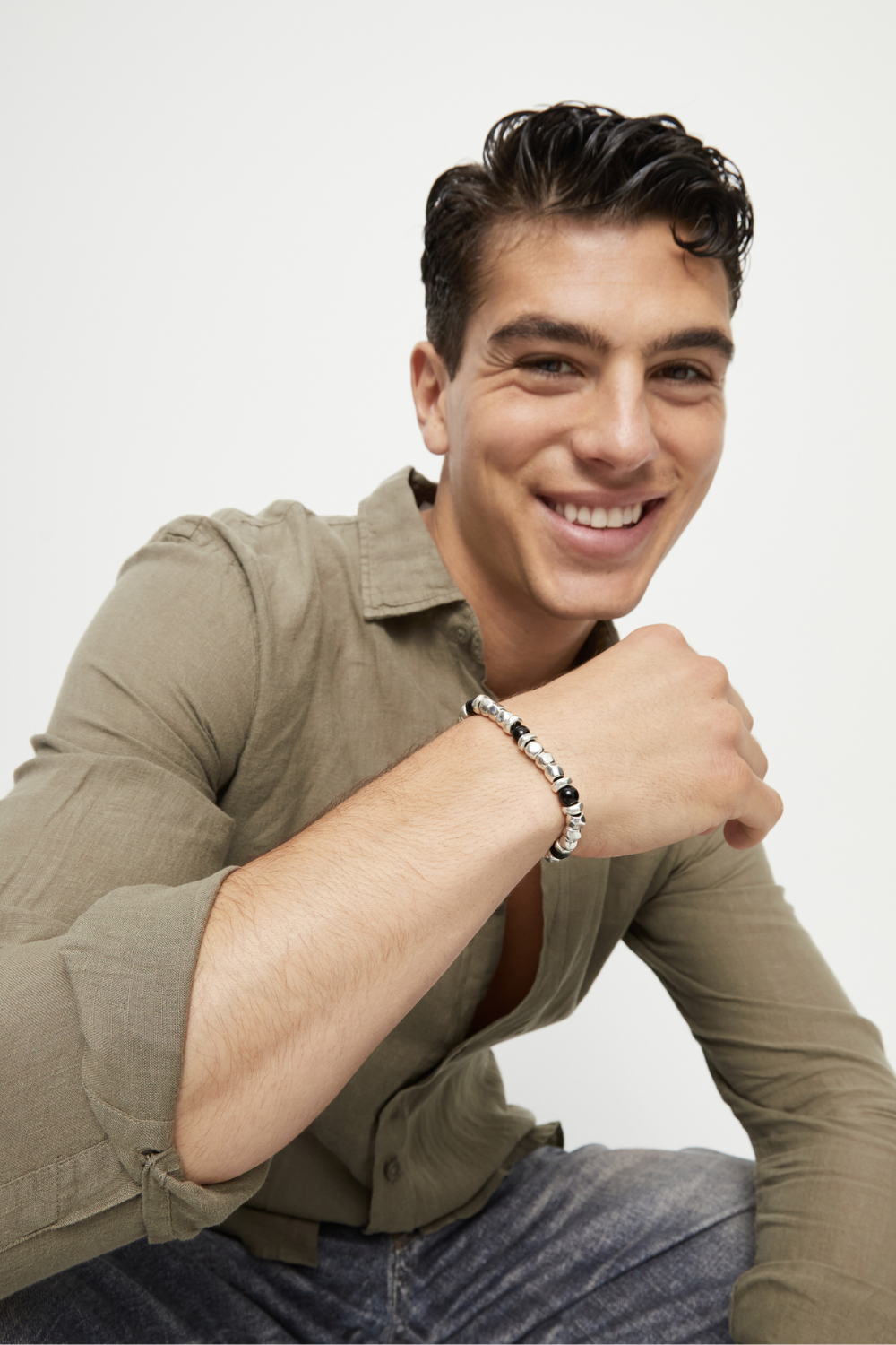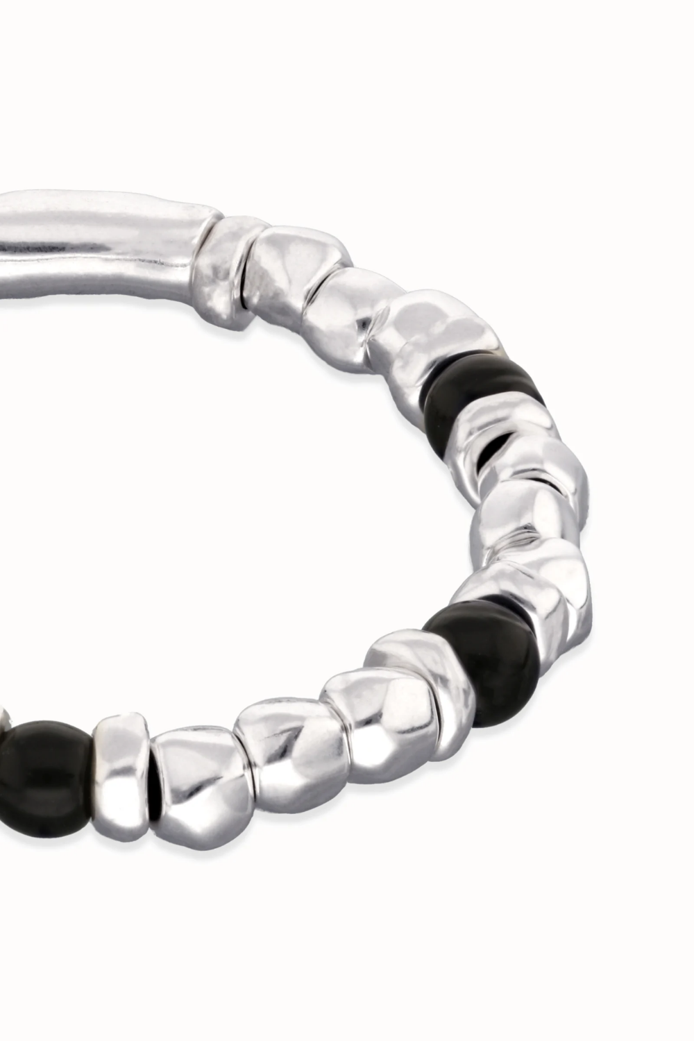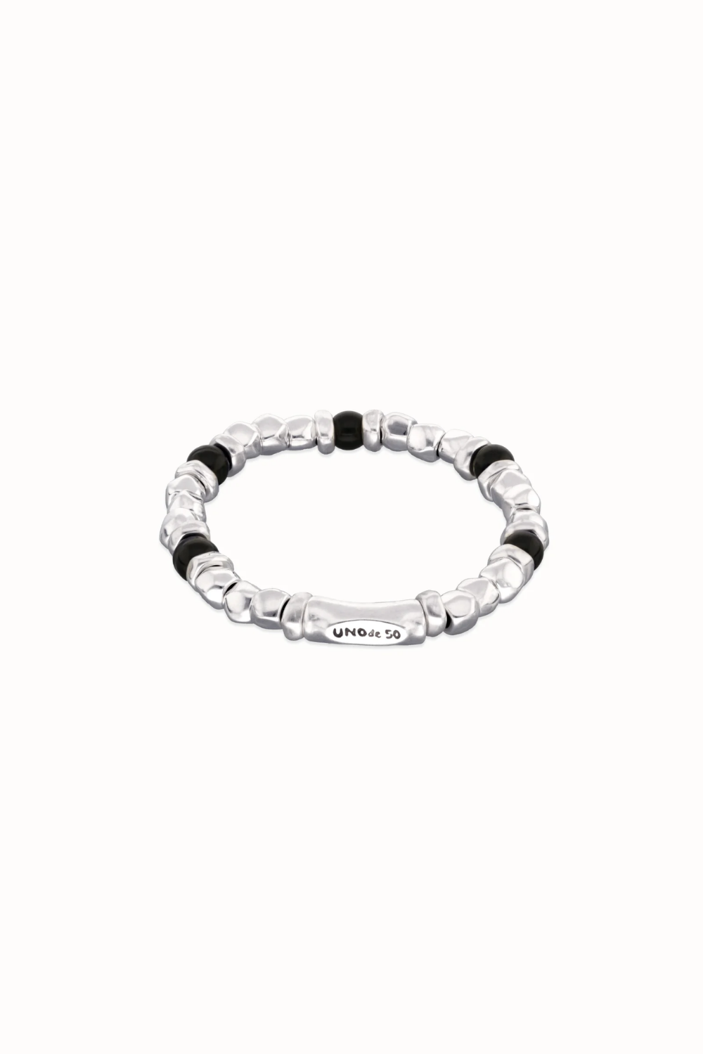 Beaded bracelet with silver and black Murano glass beads. Jewelry, skulls, and rock & roll. The collection Ser imparable is designed to bring out your most punk spirit; a spirit that prefers to ask for forgiveness rather than permission, a spirit that is unstoppable and gives it all. If you are surrounded by chaos and noise with the volume up to the max, Ser Imparable is the collection that will take you on stage like a true rock star.