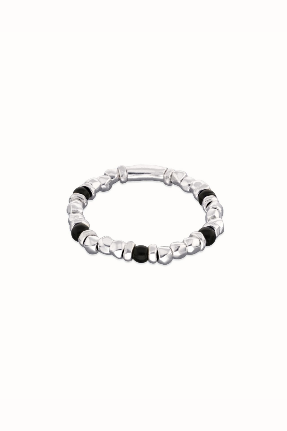 Beaded bracelet with silver and black Murano glass beads