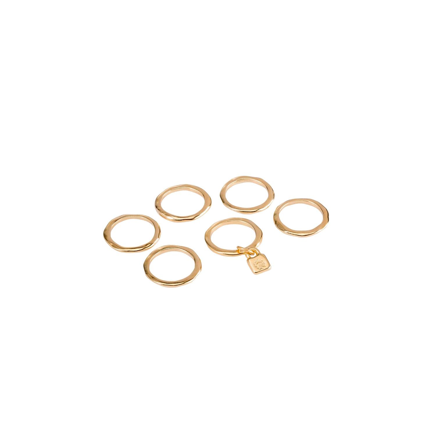 Woman multiple ring in metal mix coated in gold with the UNO de 50 padlock.